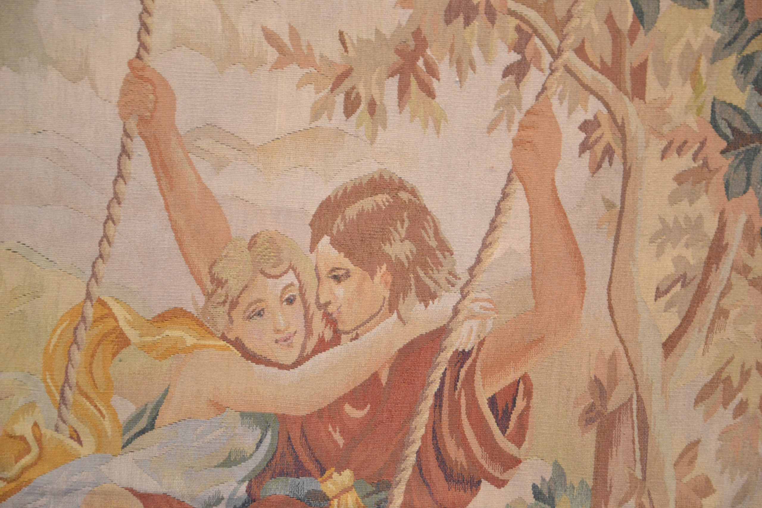 ORYGINALNY FRANCUSKI GOBELIN Z AUBUSSON - "KOCHANKOWIE NA HUŚTAWCE" 190x215