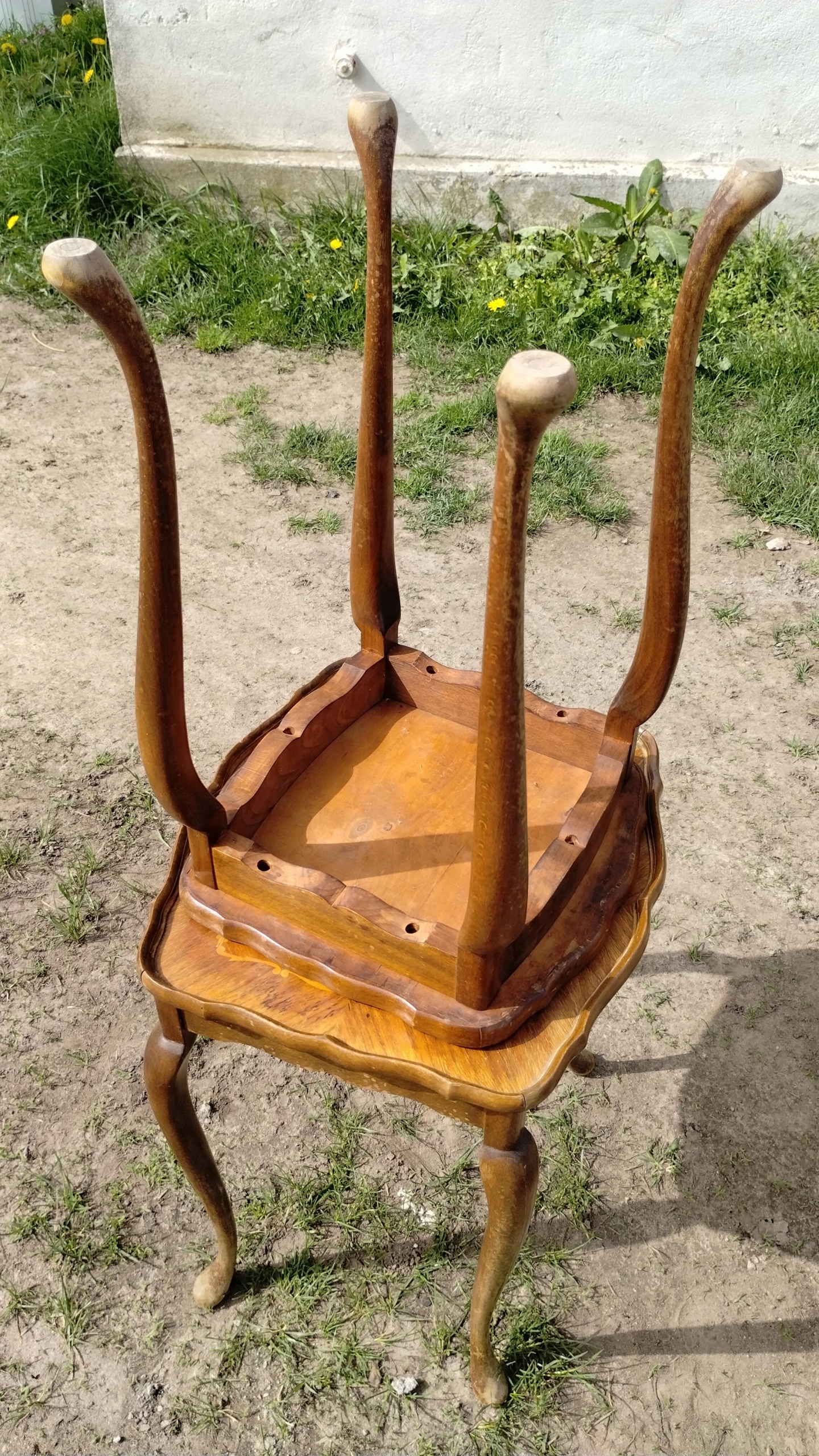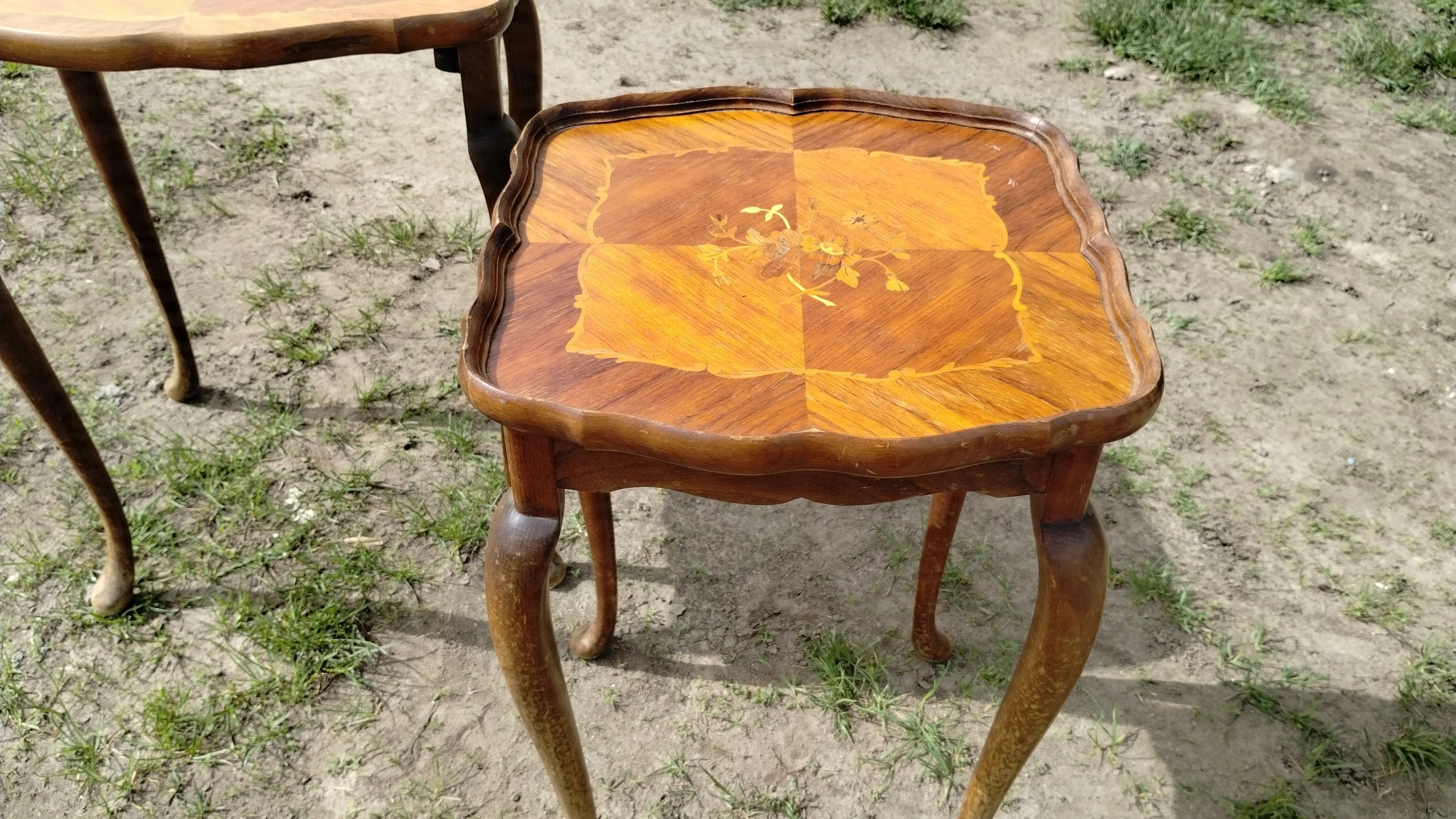Orzechowe stoliki ludwikowskie 2 w 1 intarsjowane art deco