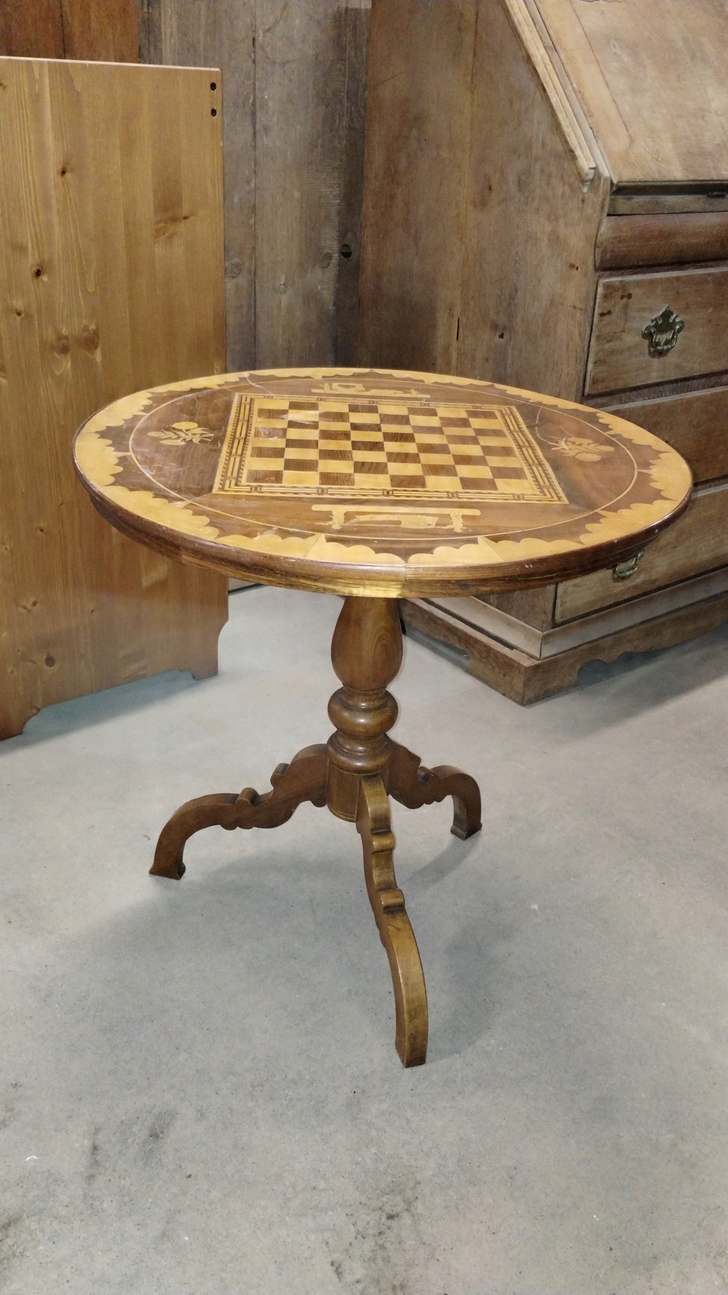 Orzechowy stolik ekranowy karciak biedermeier intarsjowany szachowy