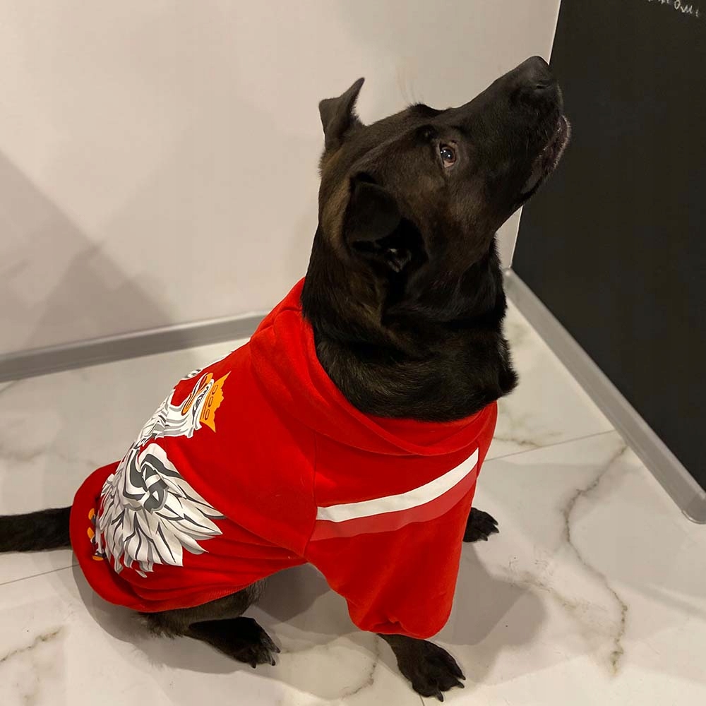 Світшот для собак "Орел" унікальний - матеріал щільний, міцний і дуже теплий. Ідеальний варіант для собак, які цінують тепло під час прогулянки, коли термометр за вікном показує нижчу температуру. Принт орла на спині Чотирилапий схожий на орла з польського герба - білий, величний з жовтим дзьобом. На рукавах біля капюшона є біло-червона смуга, що імітує польський прапор. Світшот має капюшон кольору світшота: червоний або чорний. Ранти на рукавах і животі допоможуть собаці правильно тримати одяг. місце під час бігу або хода. Толстовка ідеально підходить для періодів низької температури, але також корисна під плащ, жилет або пальто.