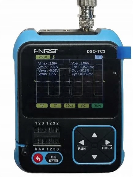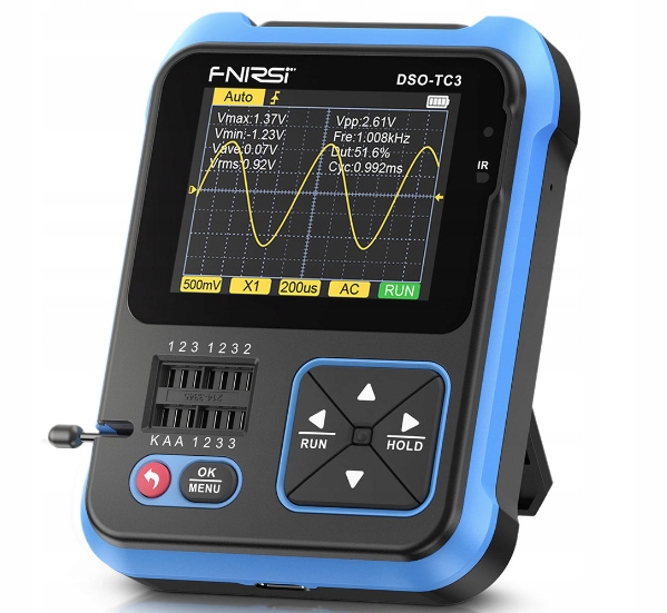 Багатофункціональний універсальний тестер DSO-TC3 від Fnirsi полегшує тестування, вимірювання та вибір напівпровідникових електронних компонентів, таких як транзистори, симистори, діоди та пасивні компоненти таких як резистори, потенціометри, котушки, дроселі, конденсатори. Тестер DSO-TC3 додатково має вбудований одноканальний цифровий осцилограф і функціональний генератор основних електричних сигналів.