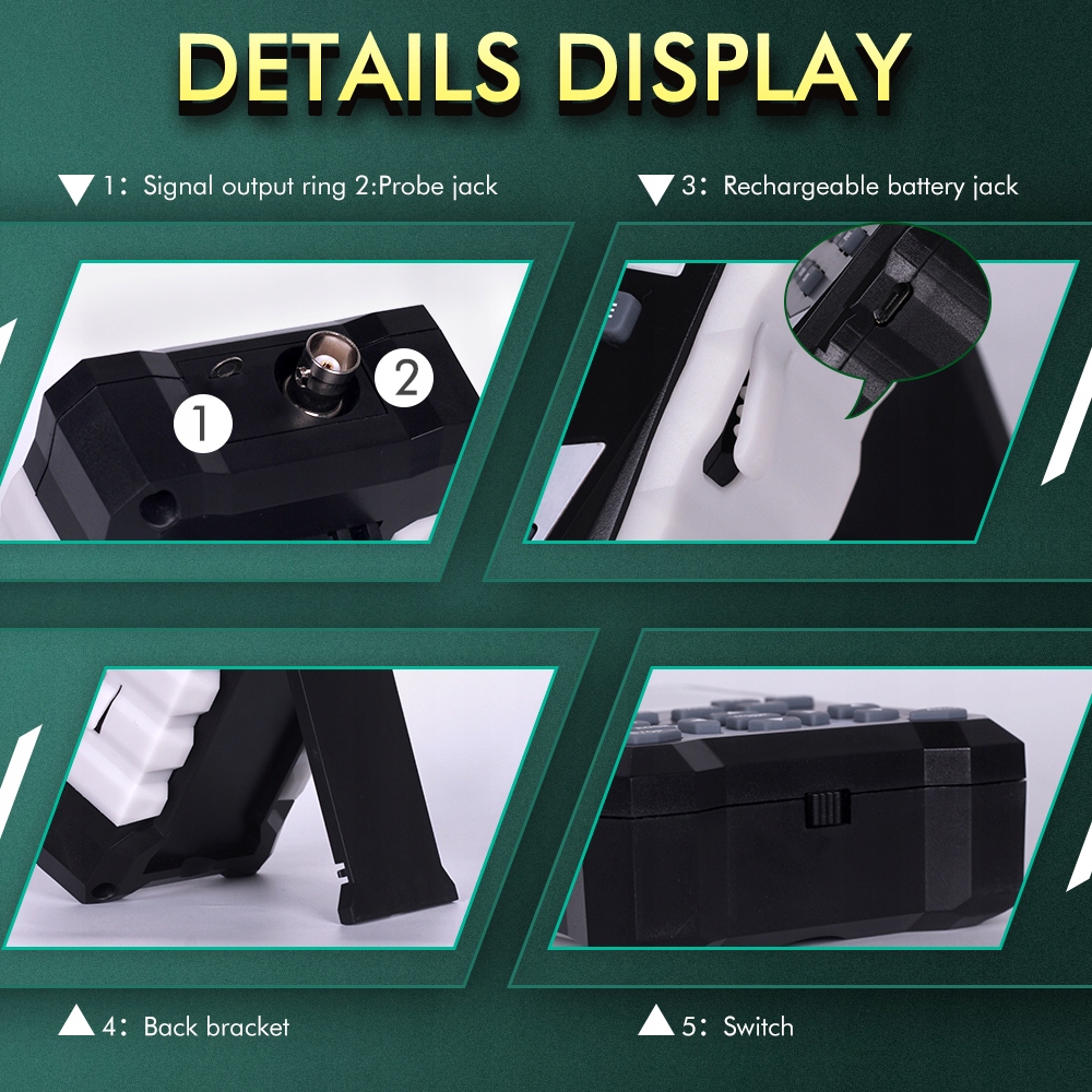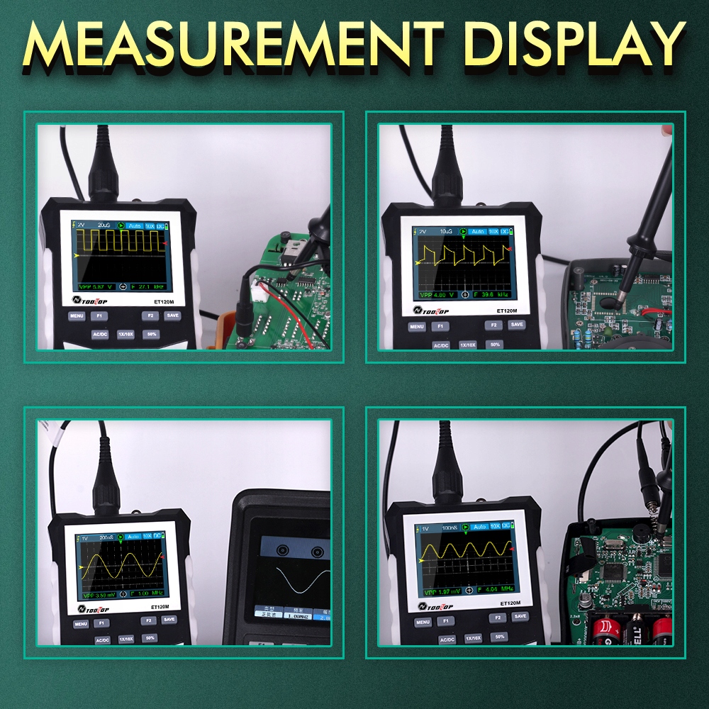 - Цей професійний осцилограф у Tooltop має РК-екран 320*240, щоб ви могли чіткіше бачити дані, регульований ідентифікатор підсвічування, ви можете змінити його на інший випадок, він також має 4-швидкісну функцію прямокутного виведення сигналу WA-ve та має невеликий розмір, щоб ви могли брати його куди завгодно. Приходьте та спробуйте.
