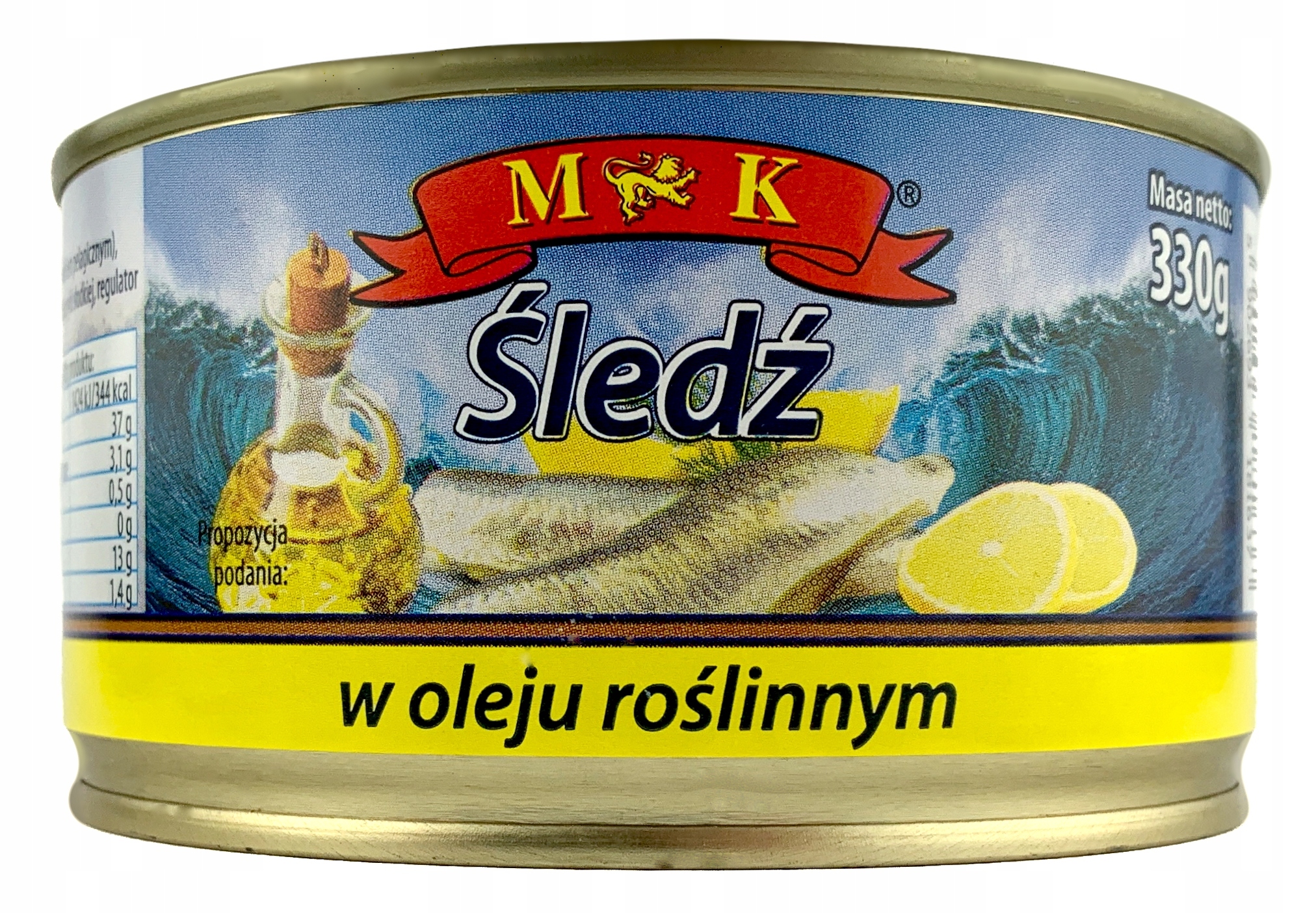 Інгредієнти: оселедець Clupea harengus (район рибальства: Балтійське море FA0 27 IIId, виловлений у морі: пелагічний трал), (60% риби до стерилізації), рапсова олія (40% до стерилізації), сіль , екстракт солодкого перцю, регулятор кислотності: оцтова кислота.