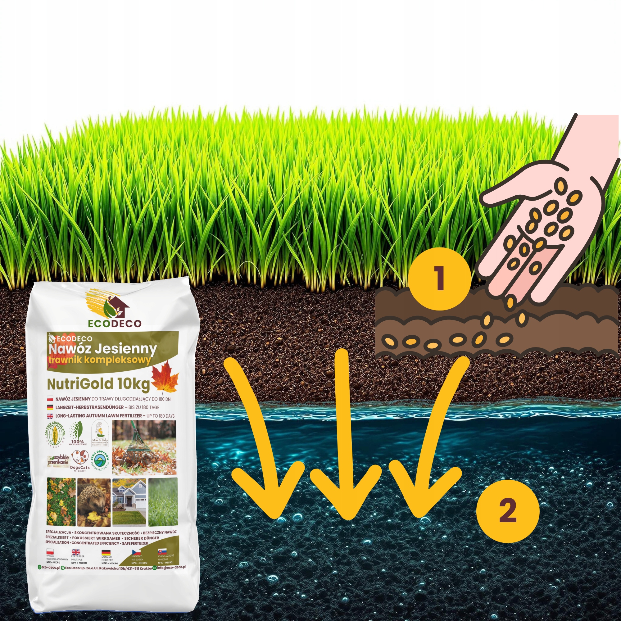 Завдяки високому вмісту калію та фосфору при зниженій дозі азоту добриво NutriGold є ідеальним вибором для осінньої підготовки газону до зими. Цей склад відмінно зміцнює кореневу систему і підвищує морозостійкість трави, забезпечуючи її здоровий і сильний старт навесні.