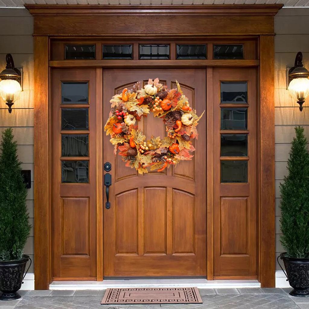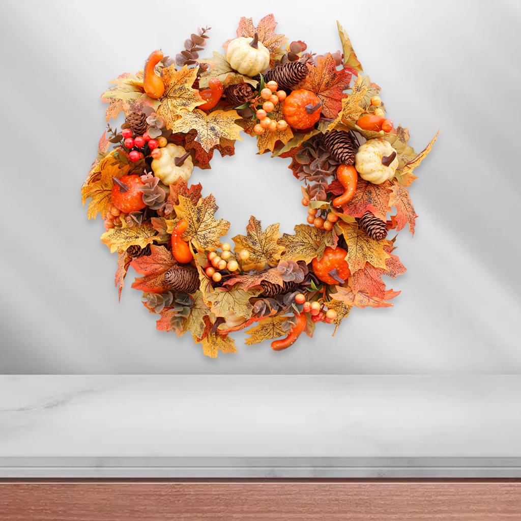 Універсальний осінній вінок - це не просто вінок на вхідні двері. З традиційним відтінком цей осінній вінок підходить для вхідних дверей, вікон, камінів, стін, офісів, роздрібних магазинів тощо.