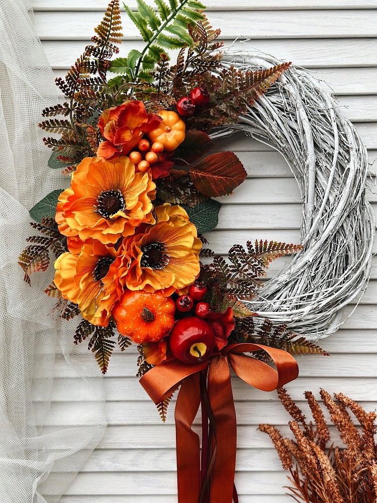 Осінній вінок для плетених дверей квітів Штучний очеретний вінок