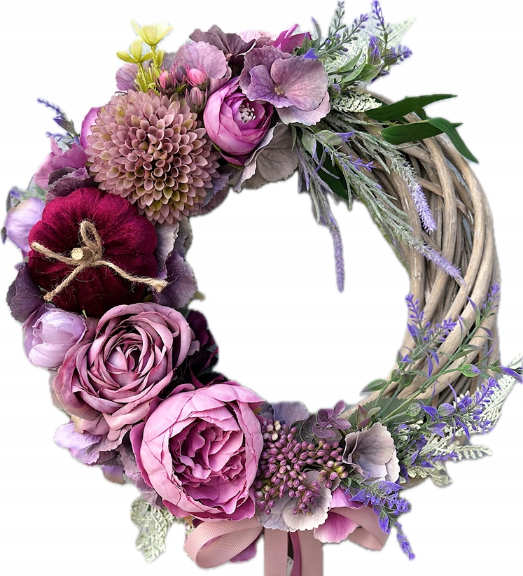 ОСІННІЙ ВІНОК НА ДВЕРІ STROIK КВІТКОВИЙ ДЕКОР ВІНОК РОЖЕВИЙ ГАРБУЗ