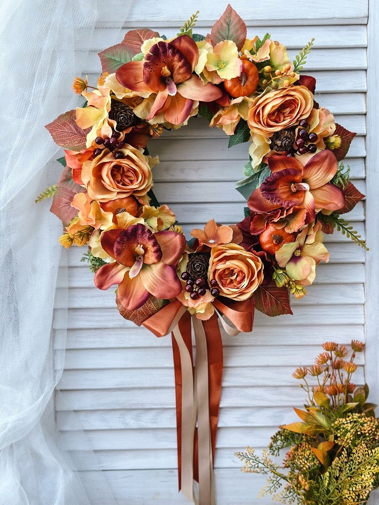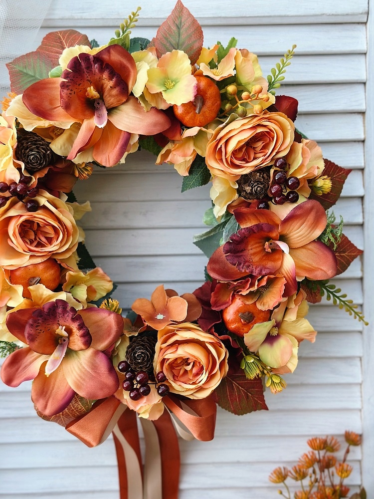 Осінній вінок на дверях квітковий очеретний вінок гарбуз