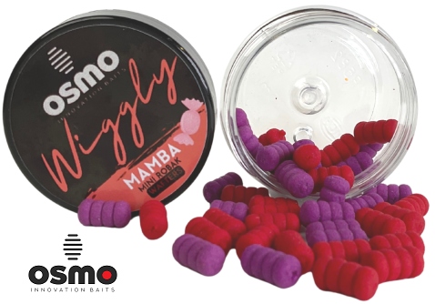Приманка працювала ідеально під час випробувань на довгу воду, аромати, кольори та ідеальна форма були відповідні, щоб приманки були якомога ефективнішими. 12 мм завдовжки, ширина 6 мм, osmo wiggly mamba є фіолетовим і червоним. запах ma Безумовно, найприємніший з усіх wiggly. Він складається з до чотирьох ароматів. Це свіжі цитрусові та ароматичні.