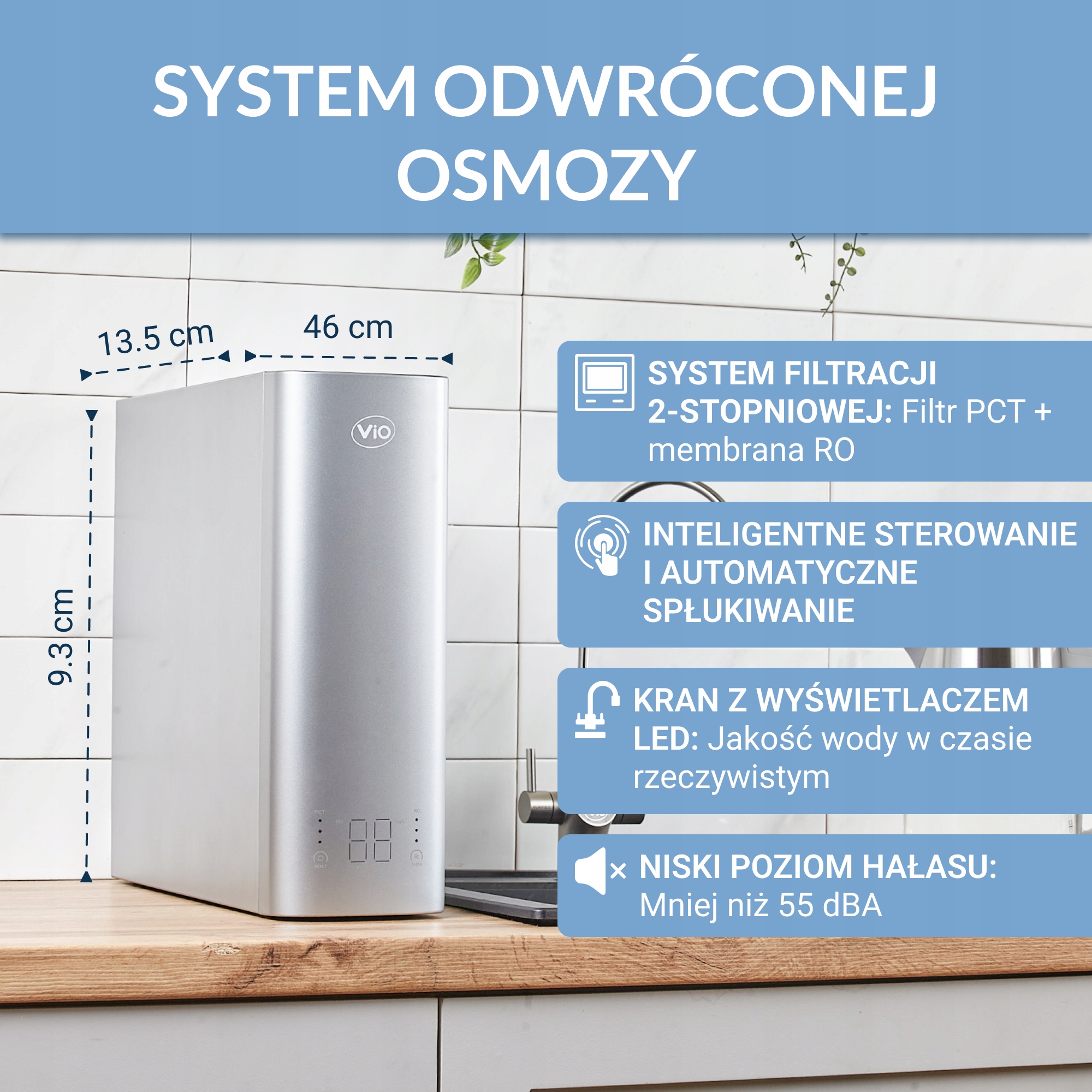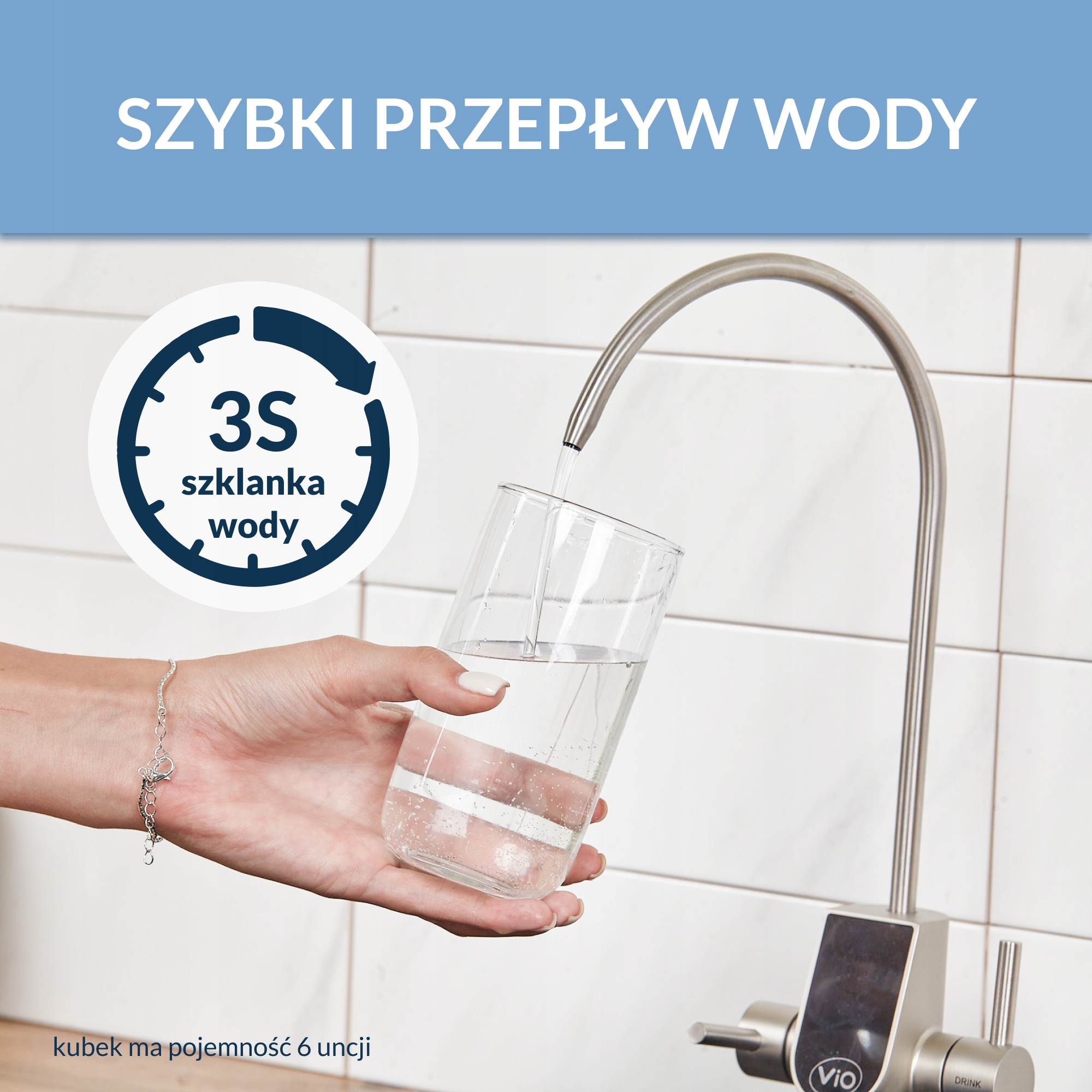 vio aw-rb08-1200t -це вдосконалена система фільтрації води, заснована на перевернутому осмосі, оснащеному інтелектуальним світлодіодним краном та численними інноваційними функціями. Це ультракомпактне обладнання встановлює нові стандарти очищення води, забезпечуючи високу швидкість потоку та мінімальні втрати води, що робить його ідеальним рішенням для будинку чи офісу. 4 4 Відсутність необхідності використання буферного бака також випускає простір для інших кухонних приладів. 4 Екран полегшує експлуатацію системи навіть для недосвідчених користувачів. Індикатори допоможуть у своєчасній заміні фільтрів, забезпечуючи постійний доступ до прісної води.