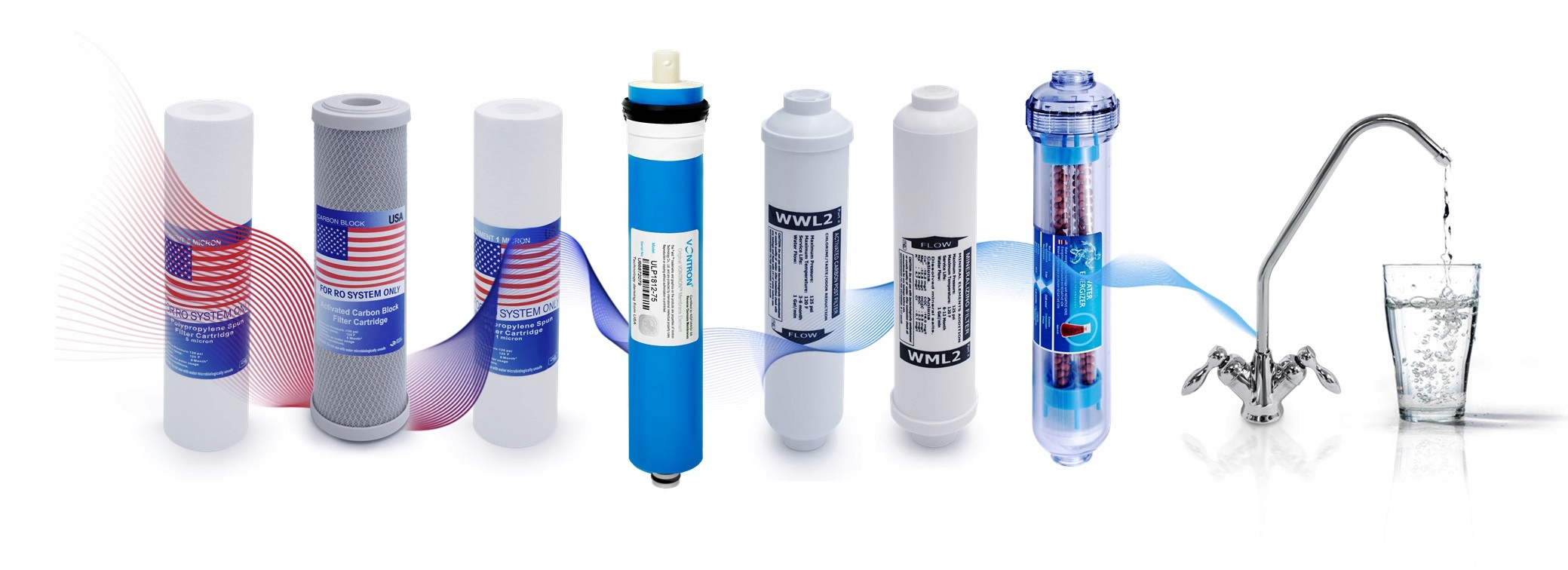 Система, розроблена для покращення якості водиза допомогою зворотного осмосу, одного з найсучасніших методів очищення води. Видаляє 90-99,99% усіх забруднень води: механічні, розчинені сполуки та мікроорганізми.