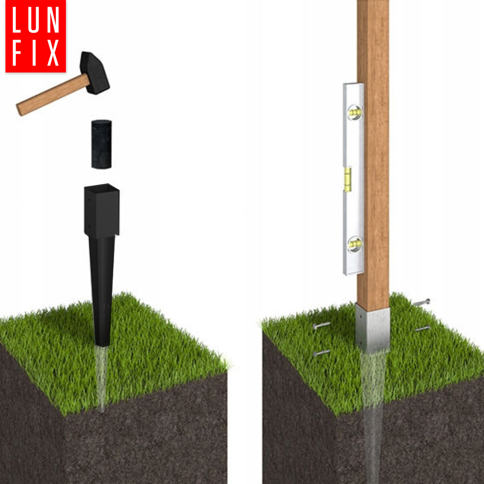 Якор, що застряг , належить до великої родини основи полюса , які служать у будівництві та архітектурі для фіксації стовпців у землі. Цей тип якоря найчастіше використовується в малих, зовнішніх проектах , щоб уникнути виготовлення фундаментів та використання складних інструментів, але захистити полюс від вологи, яка може отримати з землі. Чорний характеризується винятковою естетикою і часто вибирається для видимих суглобів.