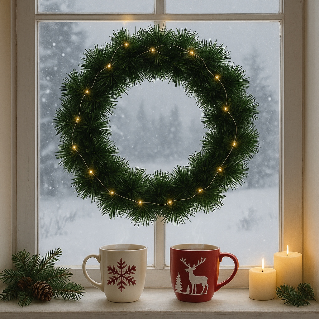 Віночок ідеально підходить для декорування напр. дверей, балконпри оформленні квартири або виготовленні декорацій. Його можна використовувати в будь-якій композиції та в будь-якому місці. Використовуйте його, щоб створювати цікавіфотографії та селфі, які сподобаються світові. Він також чудовий як подарунок. Подаруйте своїм близьким і собі незабутнє Різдво.