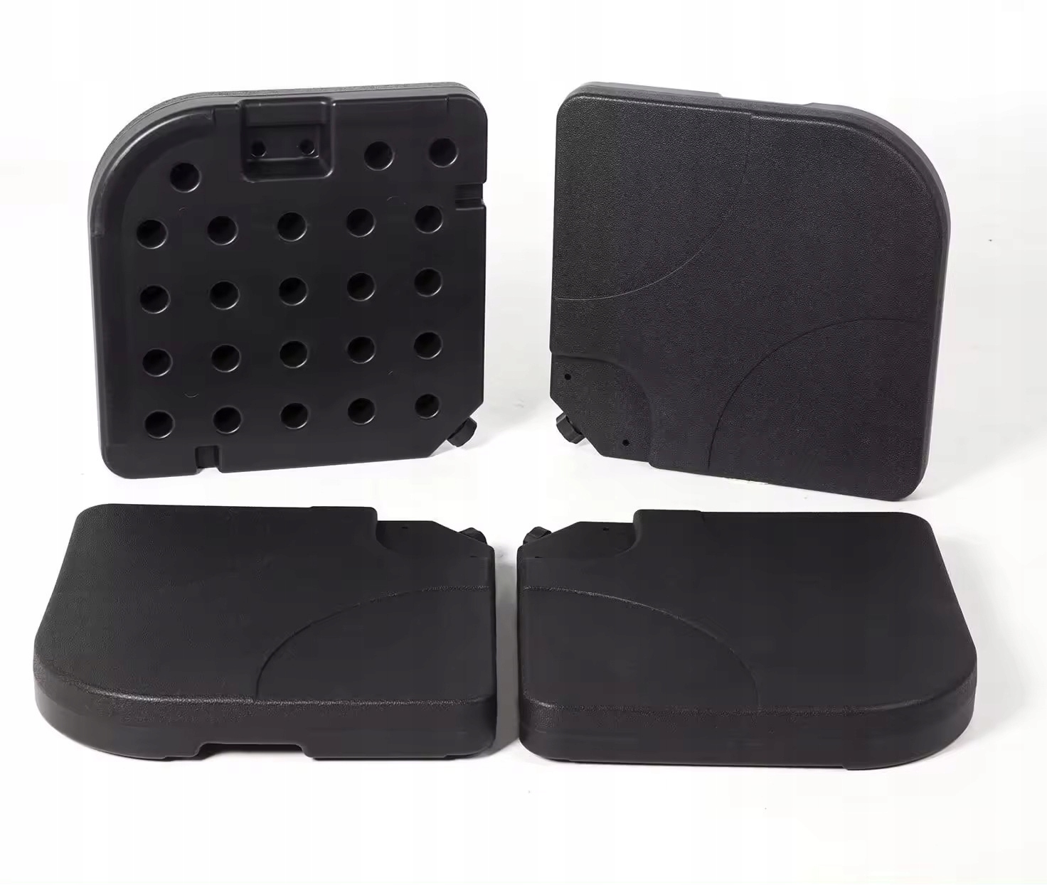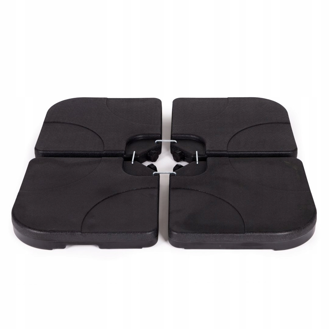 Кожен з 4 елементів основи має ковпачок, який загвинчується, відкрутивши його, наповніть основу водою. Наповнена водою панель вміщає до 15 л, весь вантаж у заповненому вигляді важить приблизно 60 кг, що дозволить утримувати навіть велику парасольку.