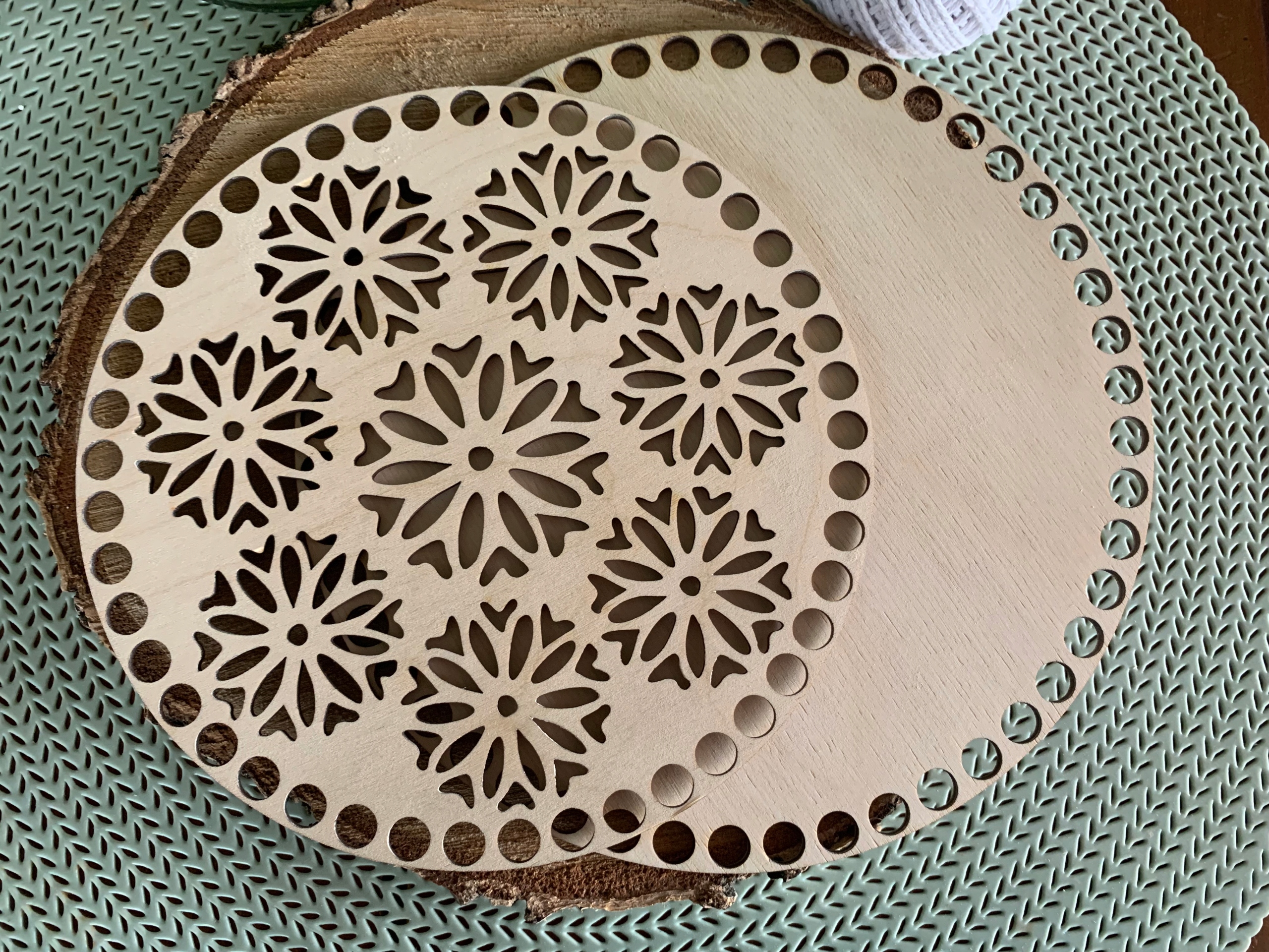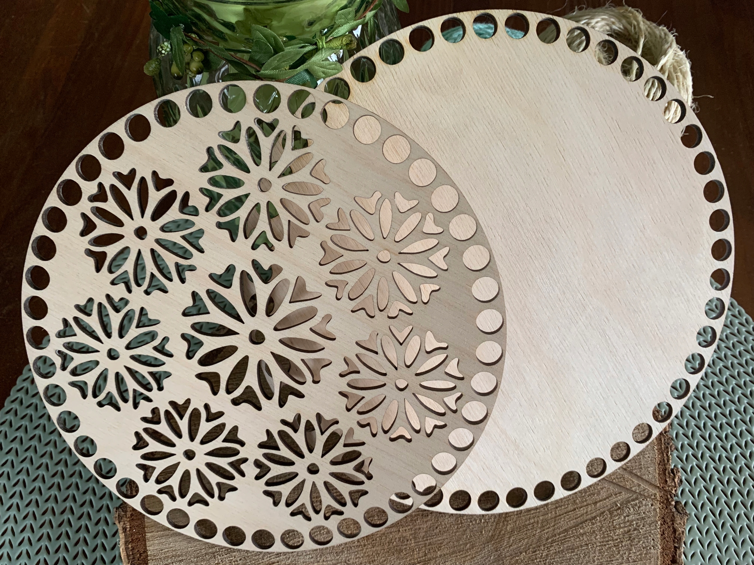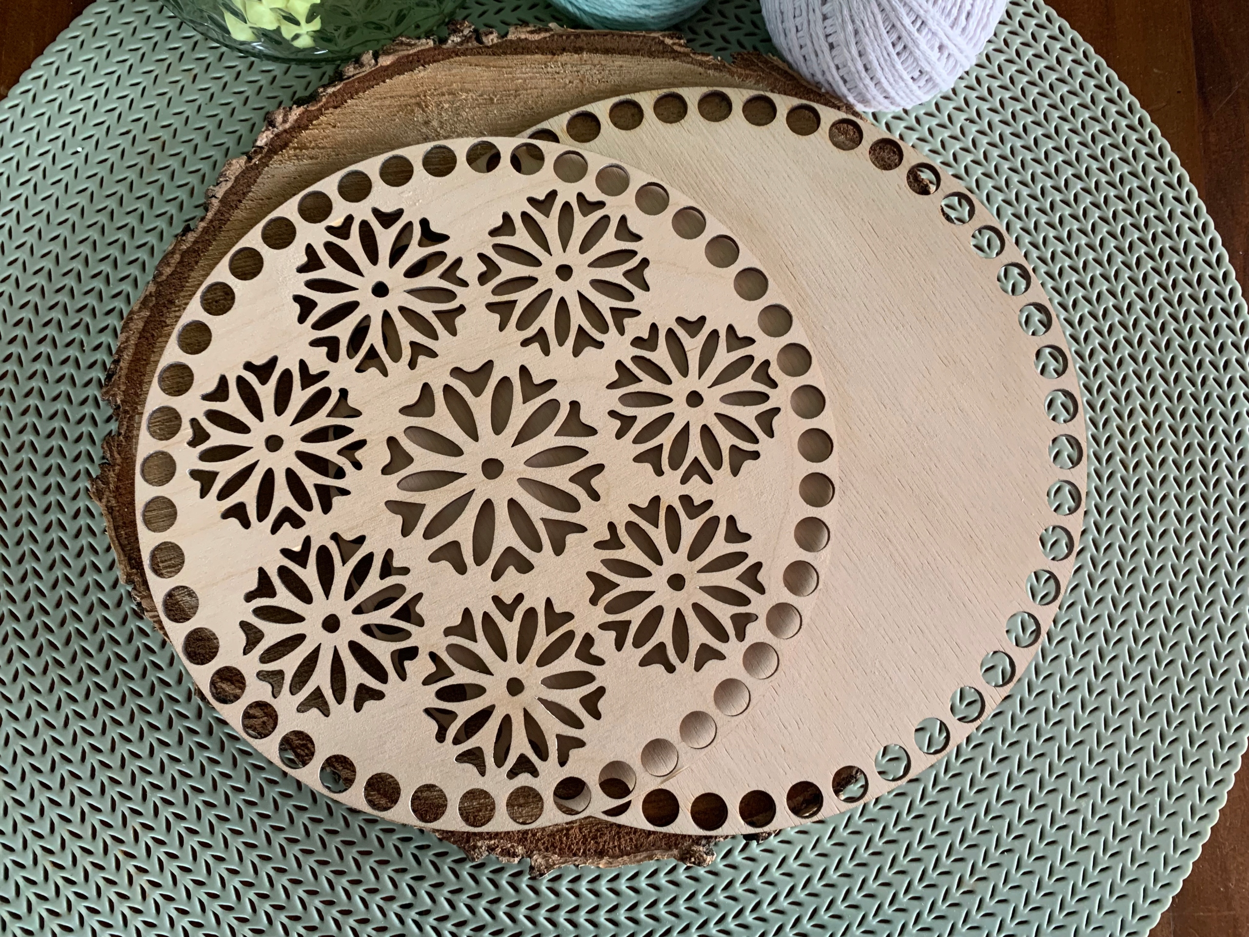 Предмет продажу - набір з двох основ для дна і кришки кошика макраме або гачком у формі кола з візерунком маленьких мандал.