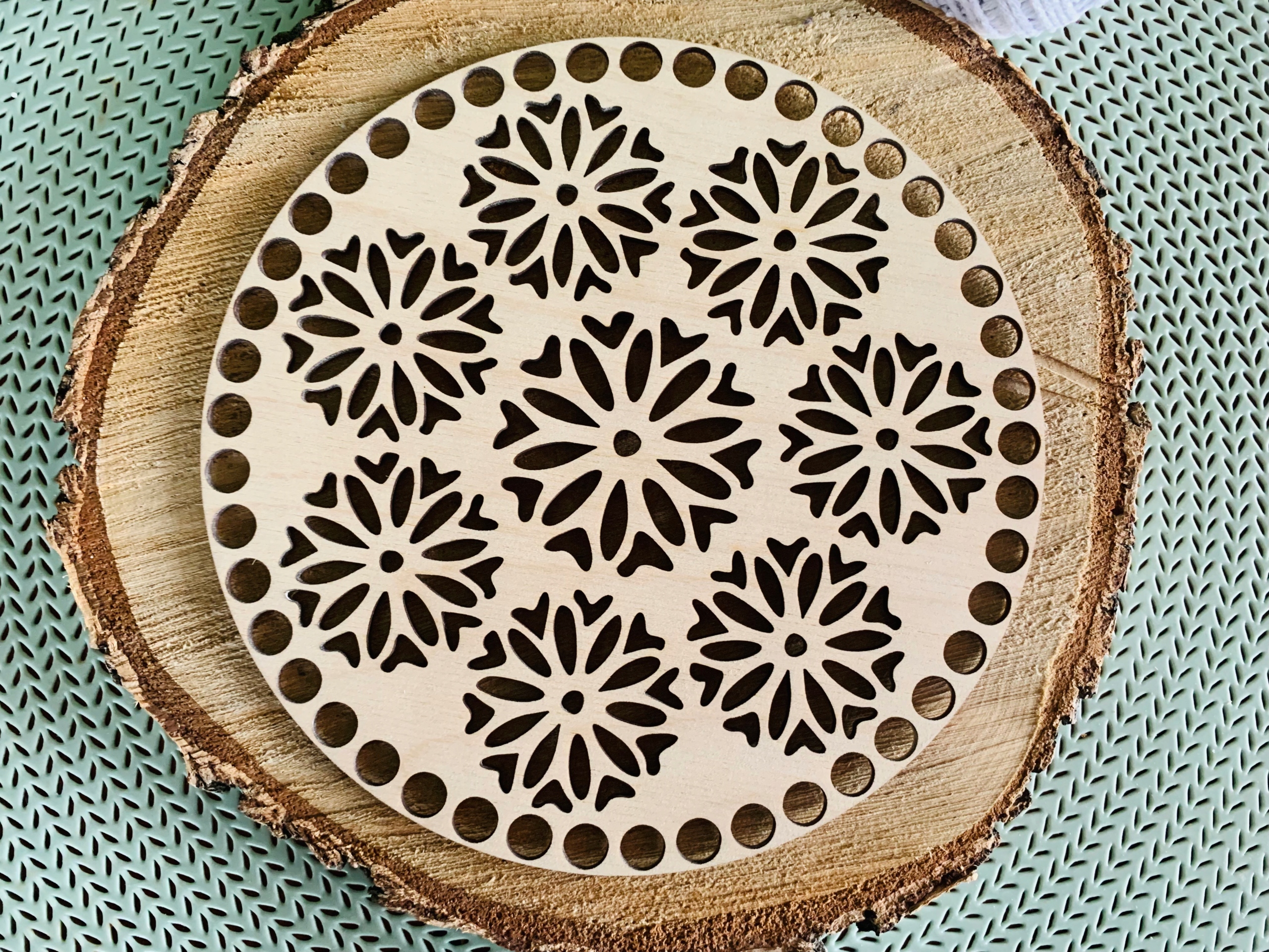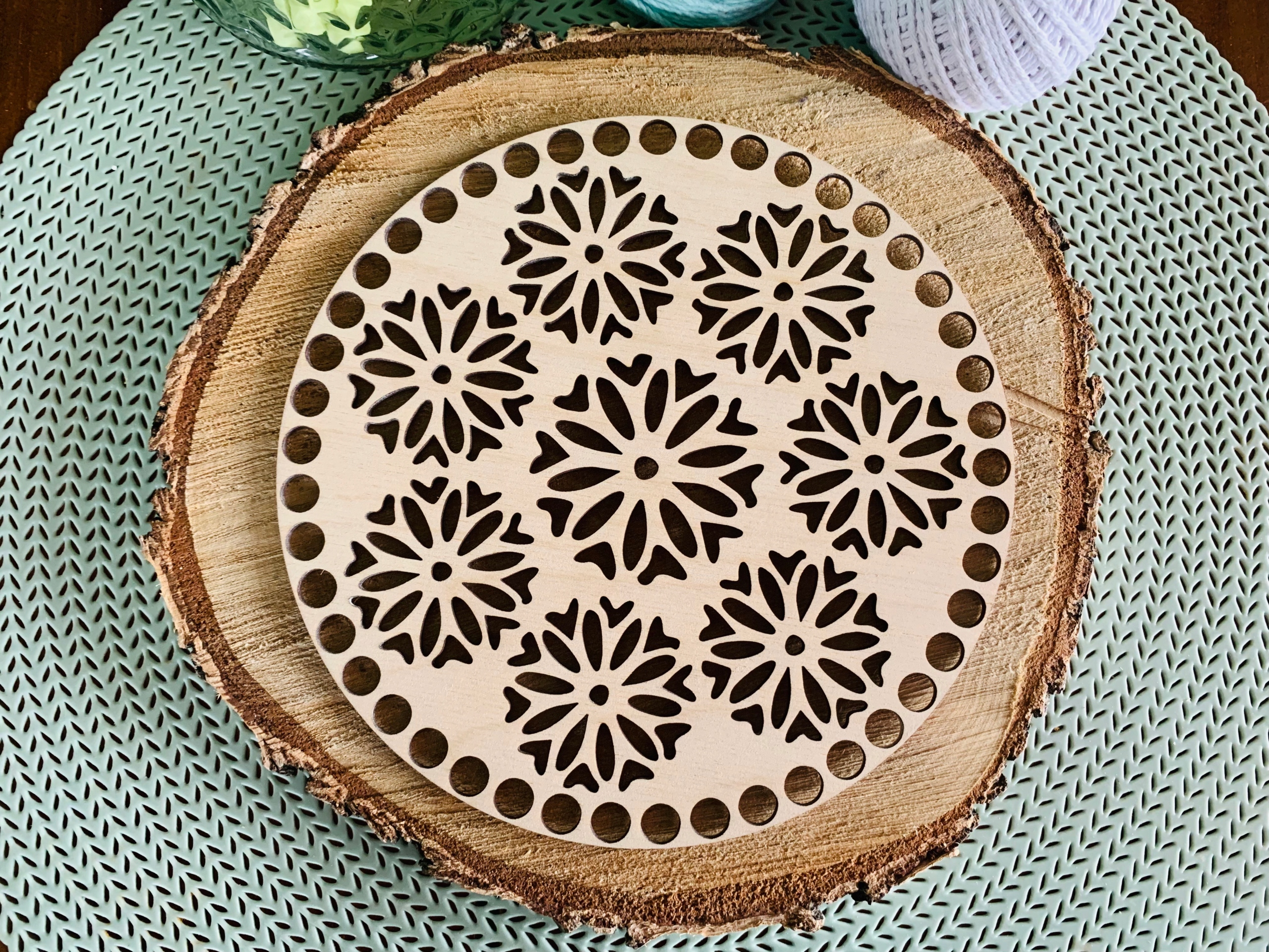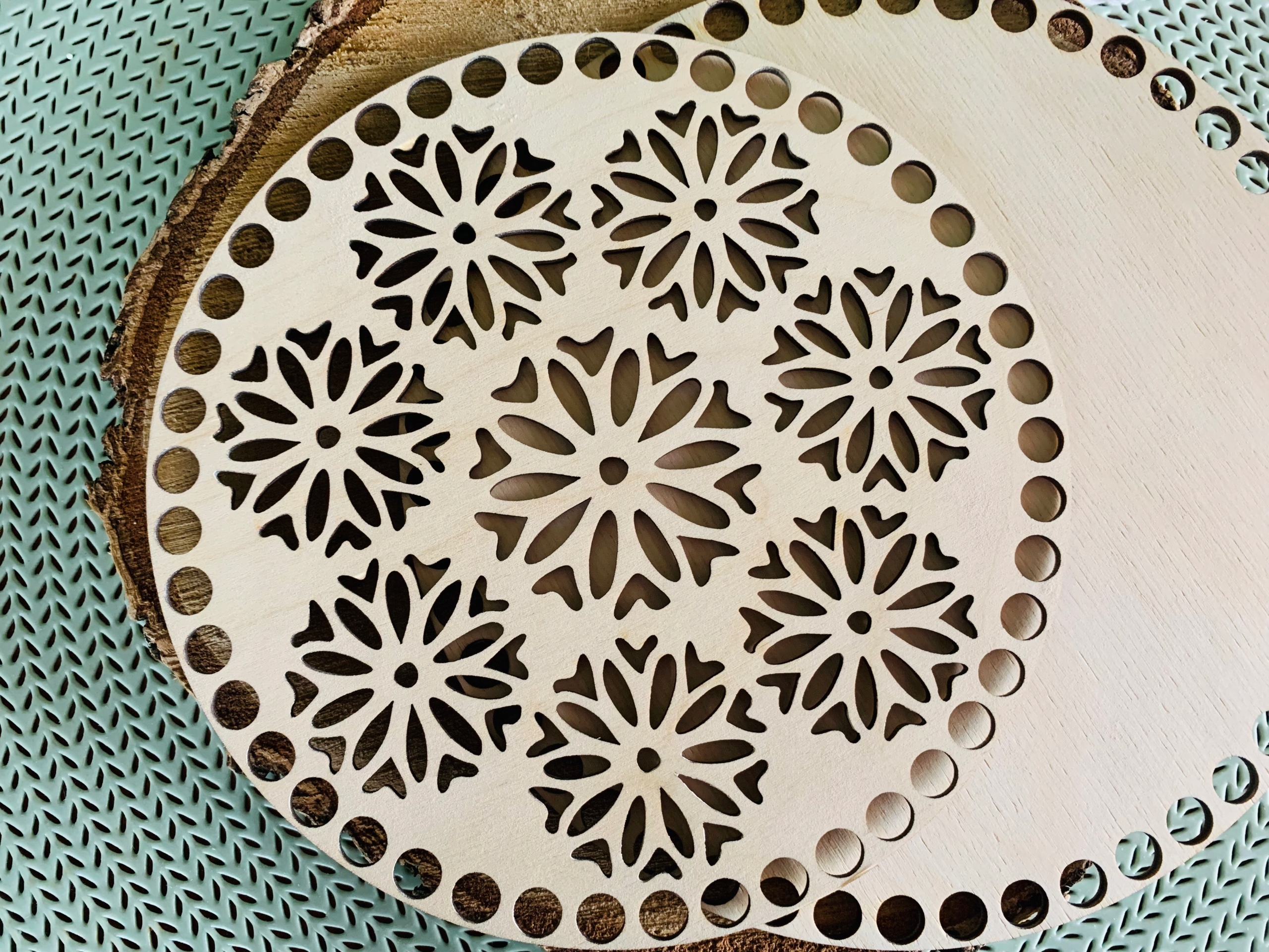 Предмет продажу - набір з двох основ для дна і кришки кошика макраме або гачком у формі кола з візерунком маленьких мандал.