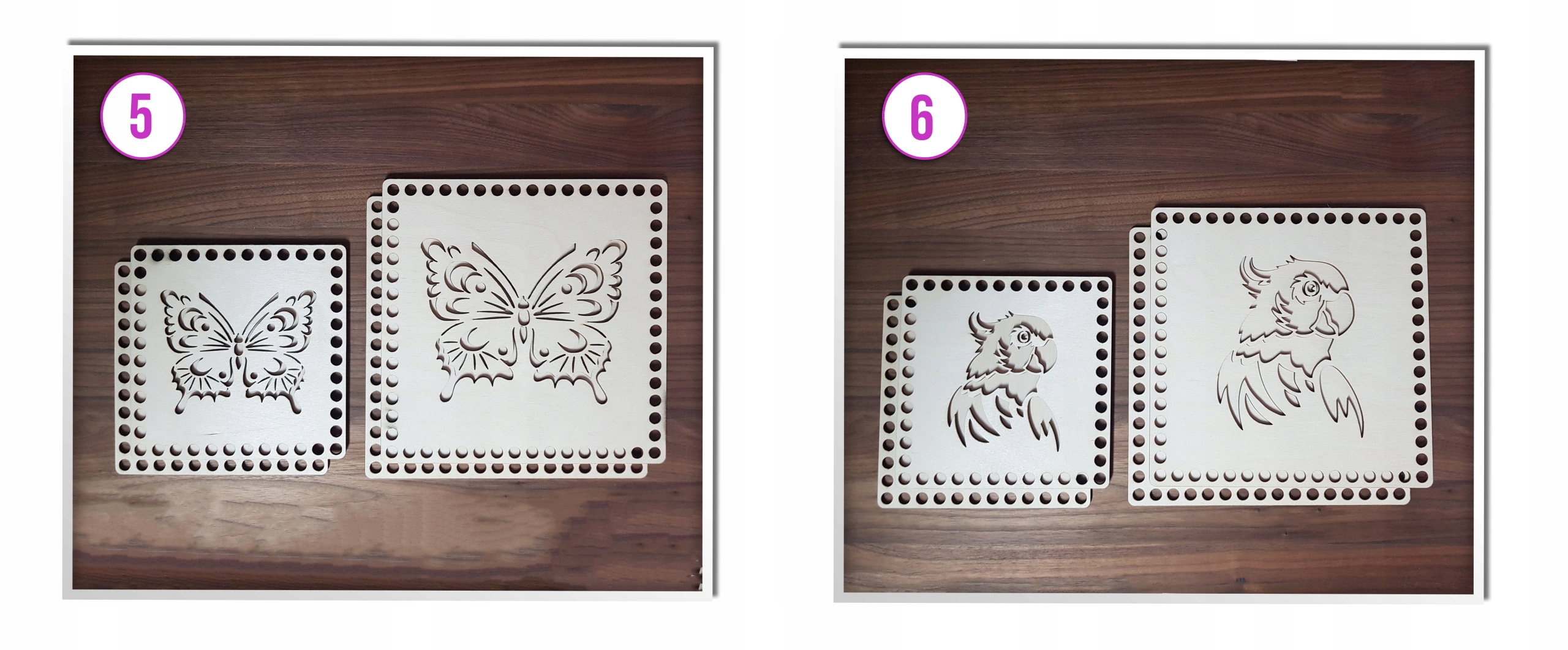 Дерев'яні підставки коробки з високоякісної дерев'яної фанери. Фанера товщиною 3 мм. Основи вирізані за допомогою професійних інструментів, тому ви отримуєте гарантію високої якості виконання.