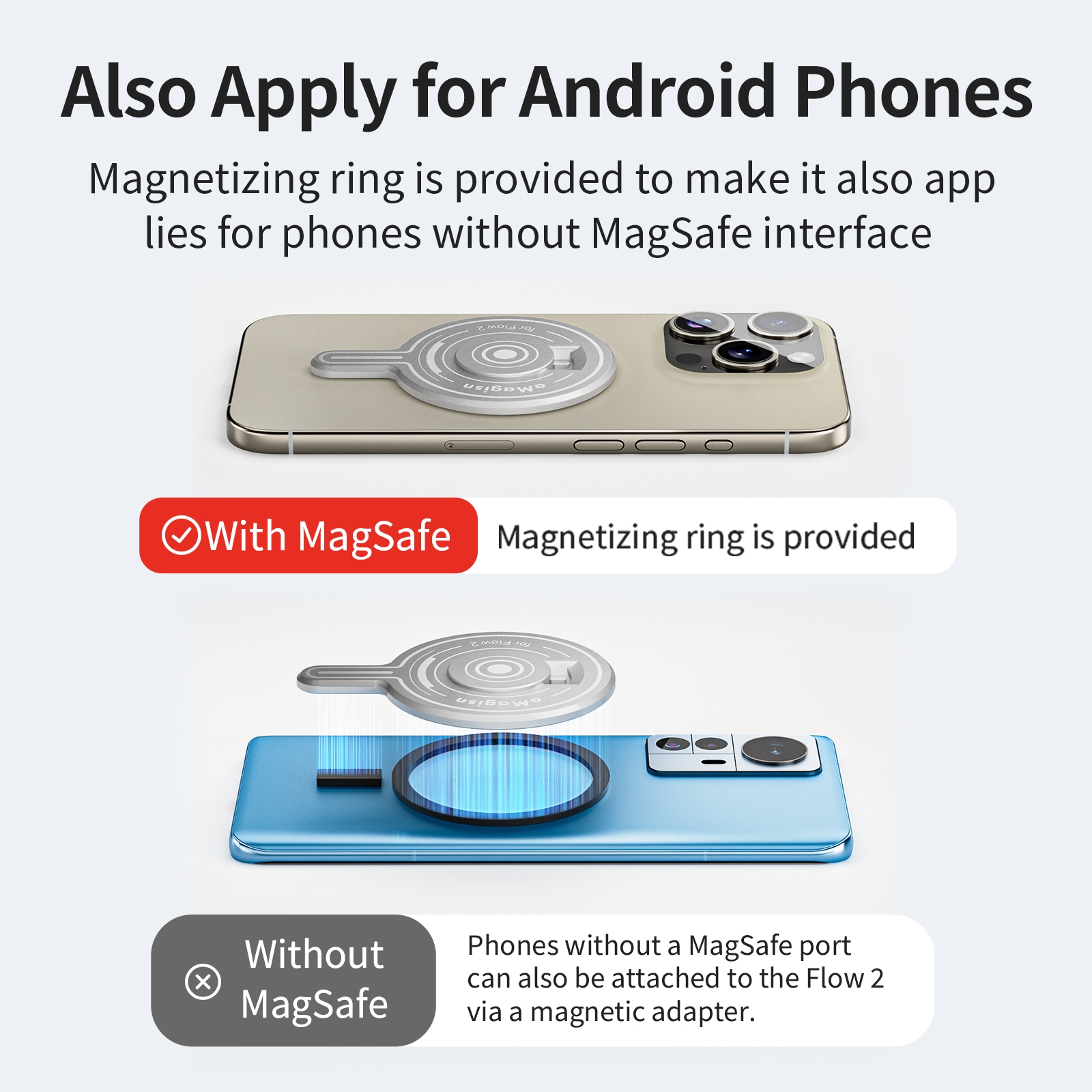 【Легко в установці та зняття】 Упаковка містить магніти та металеві кілець. Непрофесійні люди можуть легко підключити свої мобільні телефони до потоку 2 Pro. Металеве кільце підтримує телефони Android. Також дуже легко видалити телефон, і він не впаде, навіть якщо він виповниться 360 градусів.
