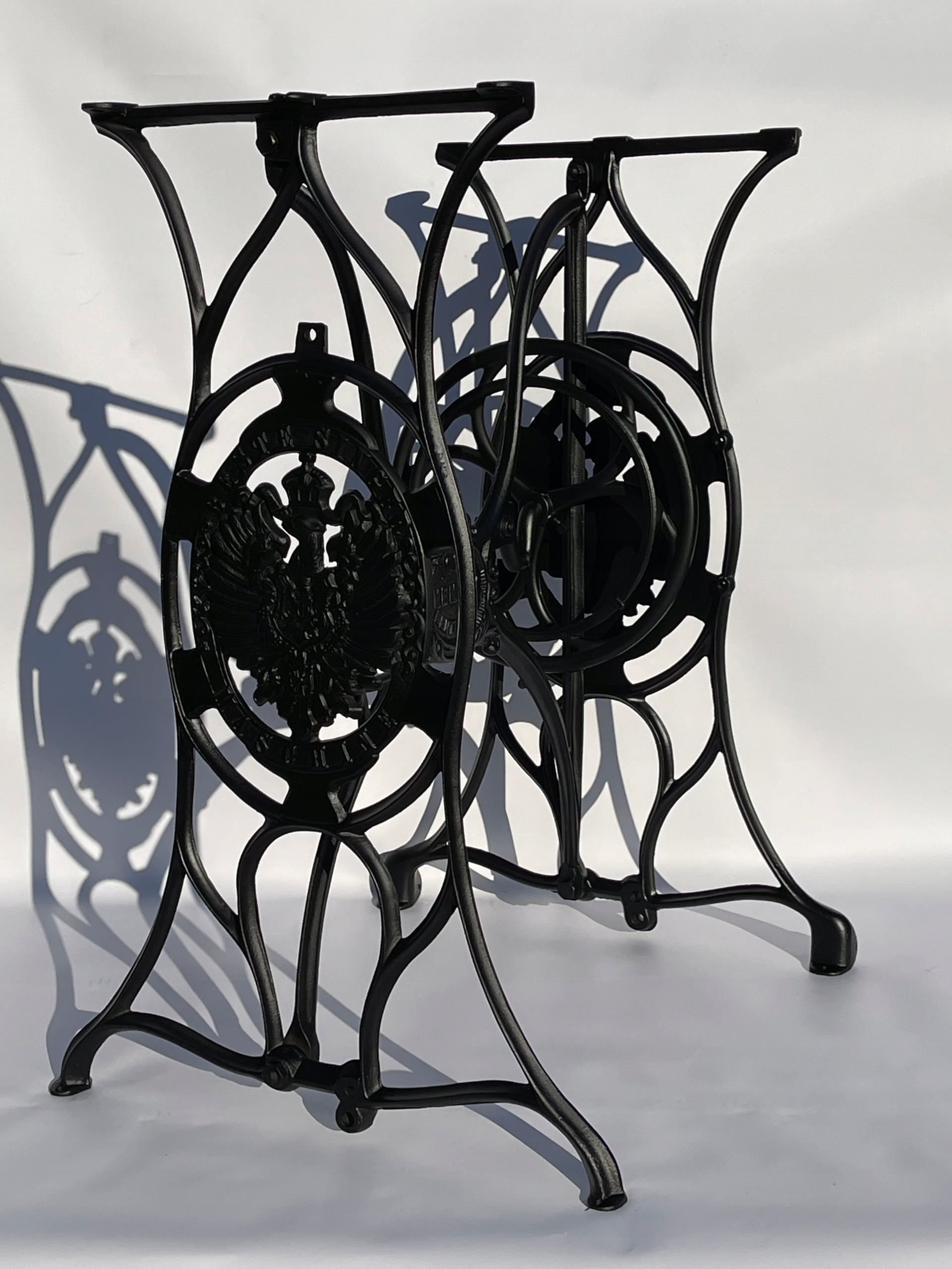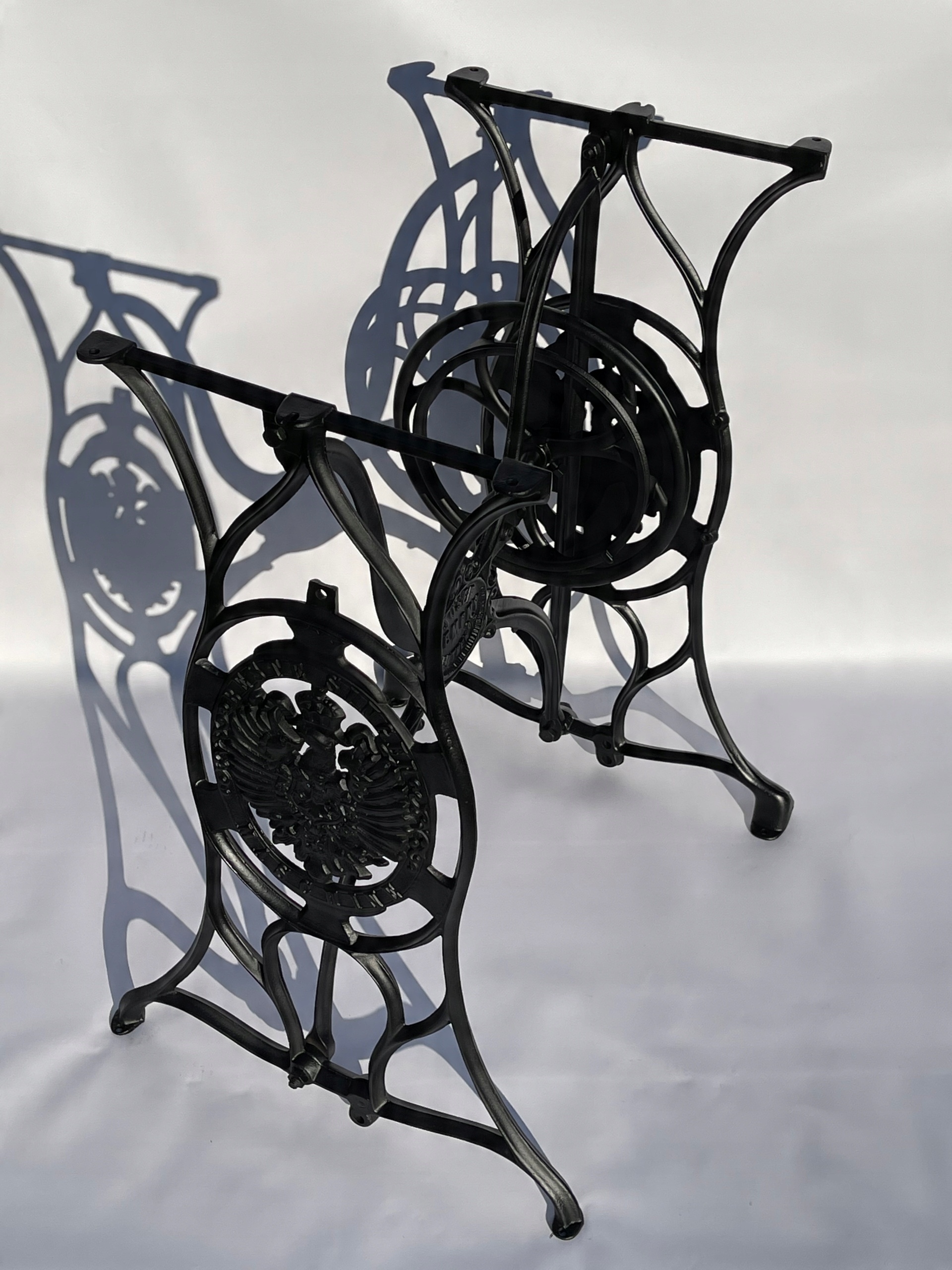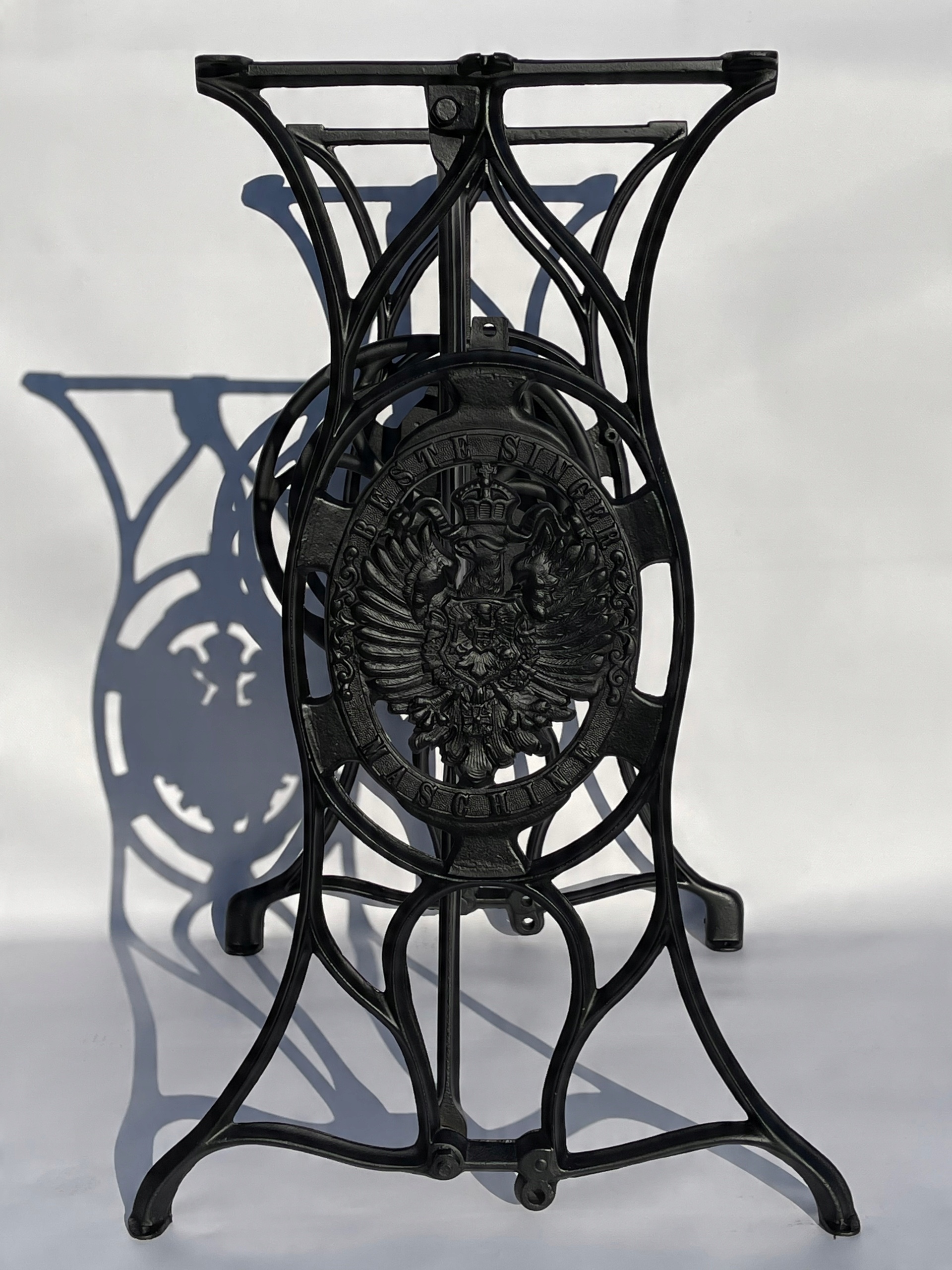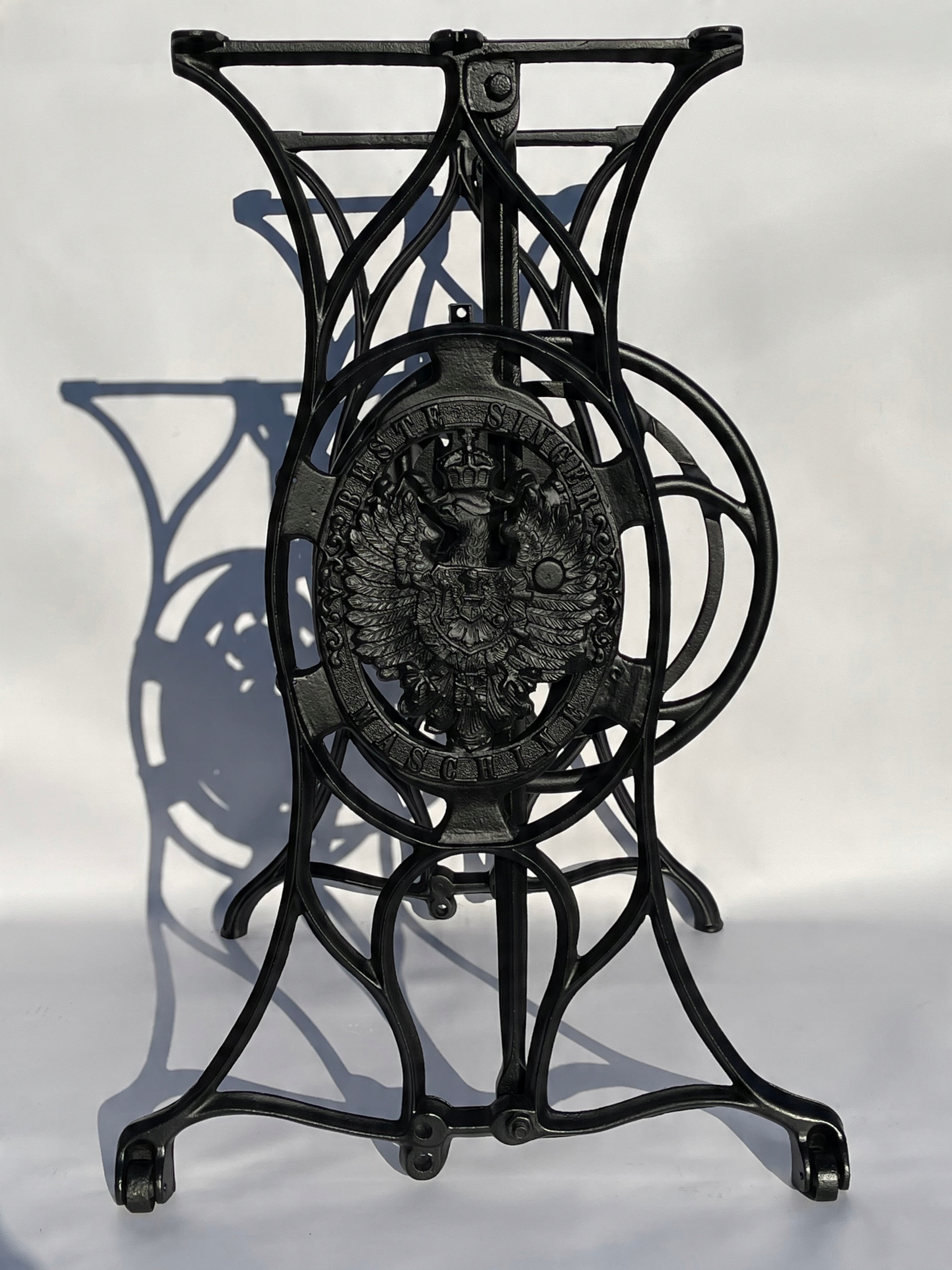 Предметом продажу є стара чавунна основа від швейної машини SINGER - JOSEF KEMPNY BEUTCHEN. Дуже гарний візерунок з орлами з довоєнного Битому. Менш поширений - єдиний у своєму роді на Allegro - справжній унікат. З боків написи BESTE SINGER MASCHINE, в середній частині JOSEF KEMPNY BEUTCHEN o/s. Він має обидва колеса в нижній частині основи.