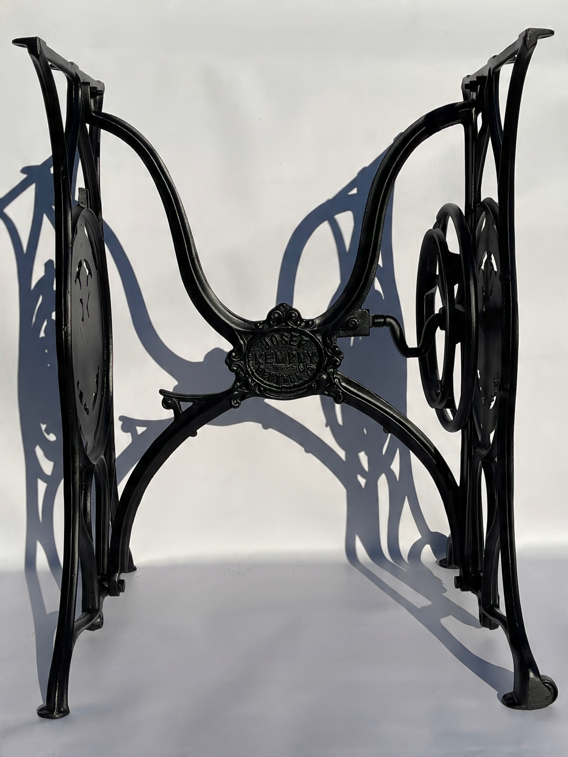 У верхній частині є 4 оригінальні отвори, для яких можна використовувати для кріплення стільниці. Це видно на останньому фото. Стан - після професійного ремонту. Піскоструменева і пофарбована в чорний колір, як на фото - готова до установки. Після додавання верху він може служити, наприклад, комп’ютерним столом. Якщо ви шукаєте щось оригінальне, цей аукціон саме для вас.