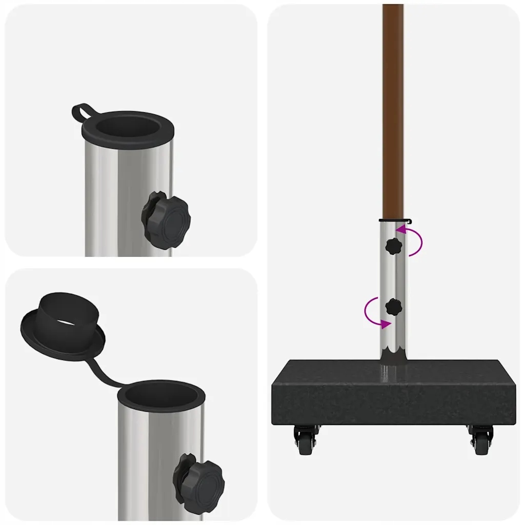 - Колеса: Завдяки коліщаткам, які можна заблокувати, переміщення цієї основи для парасольки є легким, тому її можна легко регулювати залежно від сонця. Колеса плавно рухаються по різних поверхнях, тому його можна використовувати будь-де на відкритому повітрі.