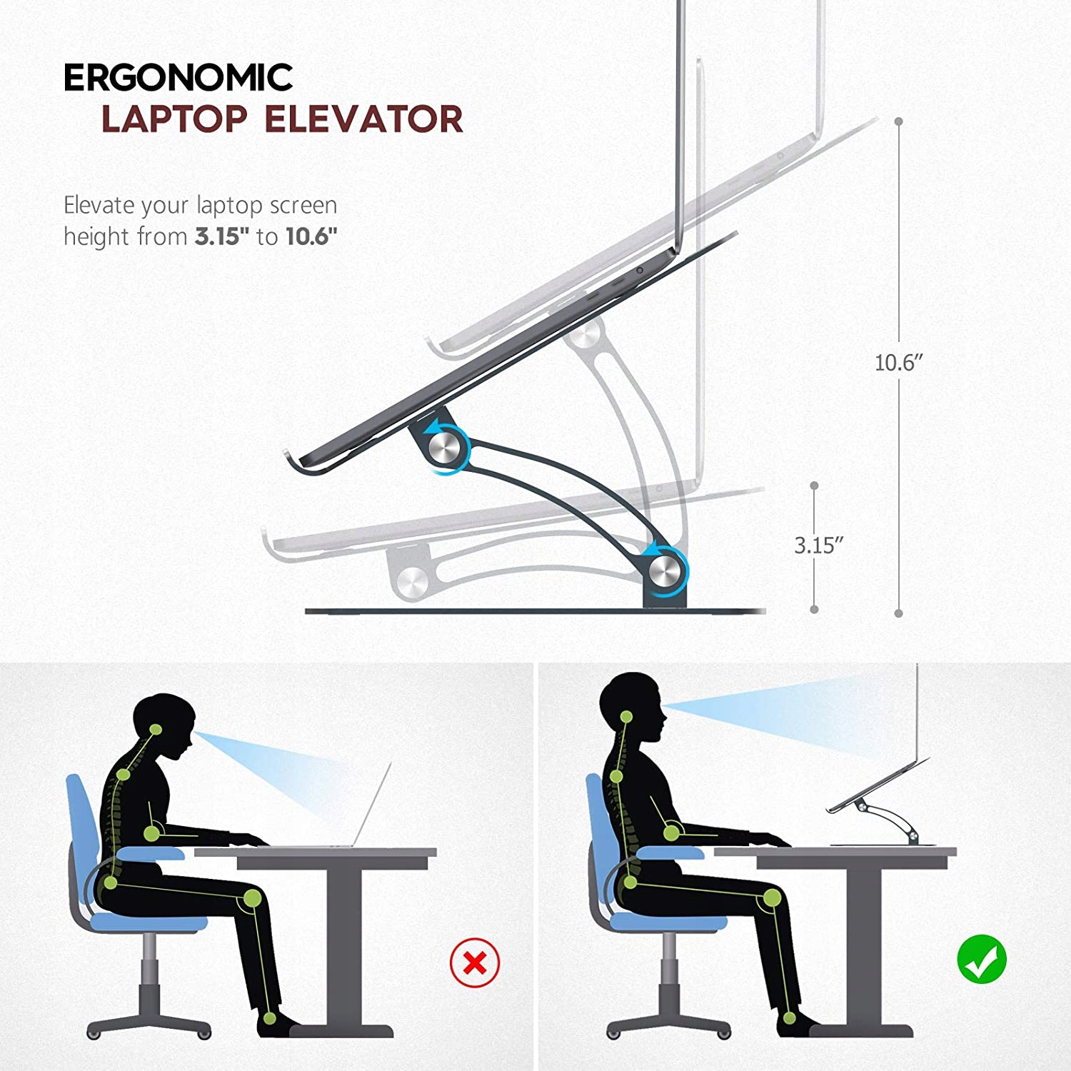 - Ергономічний компаньйон: завдяки підставці для ноутбука з гнучким регулюванням висоти та кута ви можете використовувати свій ноутбук у максимально комфортному положенні. Давайте попрощаємося з болем у плечі. Міцна конструкція: конструкція повністю з алюмінієвого сплаву робить цей ноутбук легким, але міцним. Основний компонент виробу, поворотний підшипник, залишається стабільним після 15000 випробувань на втому. Отримавши його, ви одразу відчуєте його неймовірну стабільність. Краще розсіювання тепла: великий охолоджуючий отвір у формі соти та Z-подібна металева конструкція забезпечують кращий розсіювання тепла, ніж аналогічні продукти. Значно знижує ризик перегріву комп'ютера. Універсальна сумісність: цю підставку для ноутбука можна використовувати з усіма 11-17-дюймовими ноутбуками, включаючи: MacBook, MacBook Air, Macbook Pro, Microsoft Surface, Google Pixelbook, Dell XPS, HP, ASUS, Lenovo, Acer, Chromebook, Alienware тощо.