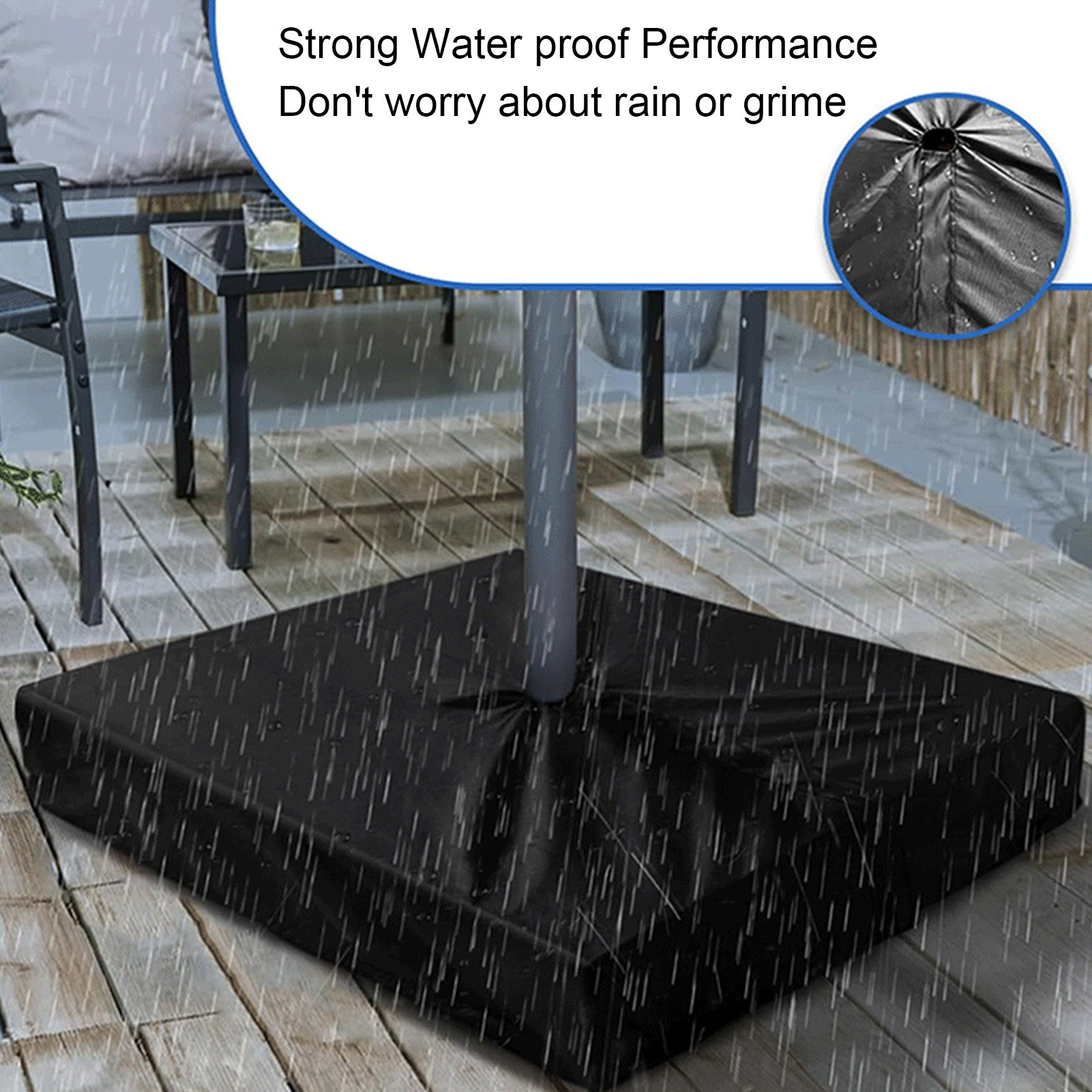 5. Відповідна основа: протектор має довжину 30 дюймів, ширину 30 дюймів і висоту 5 дюймів, що робить його сумісним із більшістю стандартних квадратних основ для парасольок. Він призначений для квадратних основ із максимальним розміром 30 дюймів.