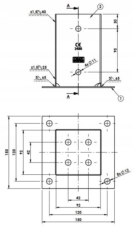 - кількість отворів - 12 отворів ø11 мм