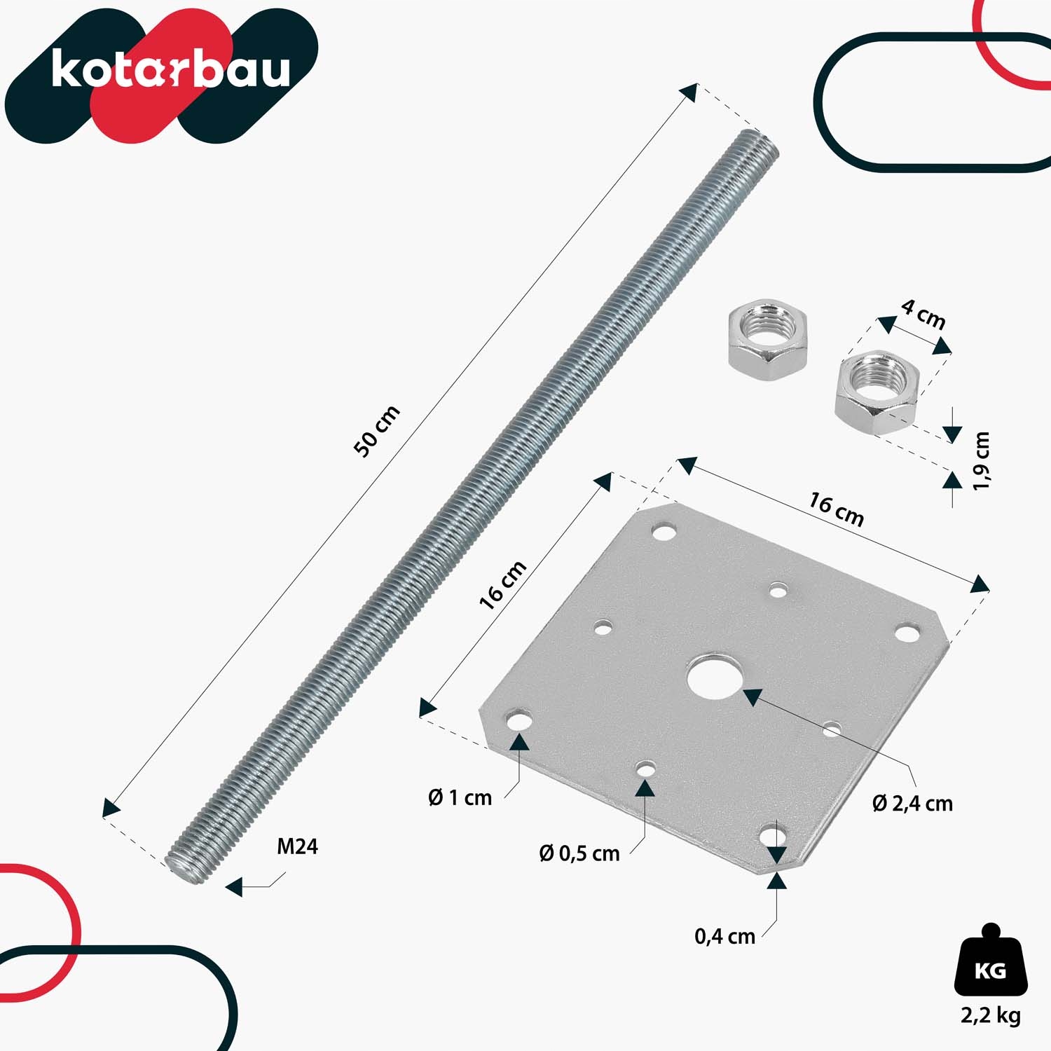 - Довжина різьбових стрижнів: 500 мм