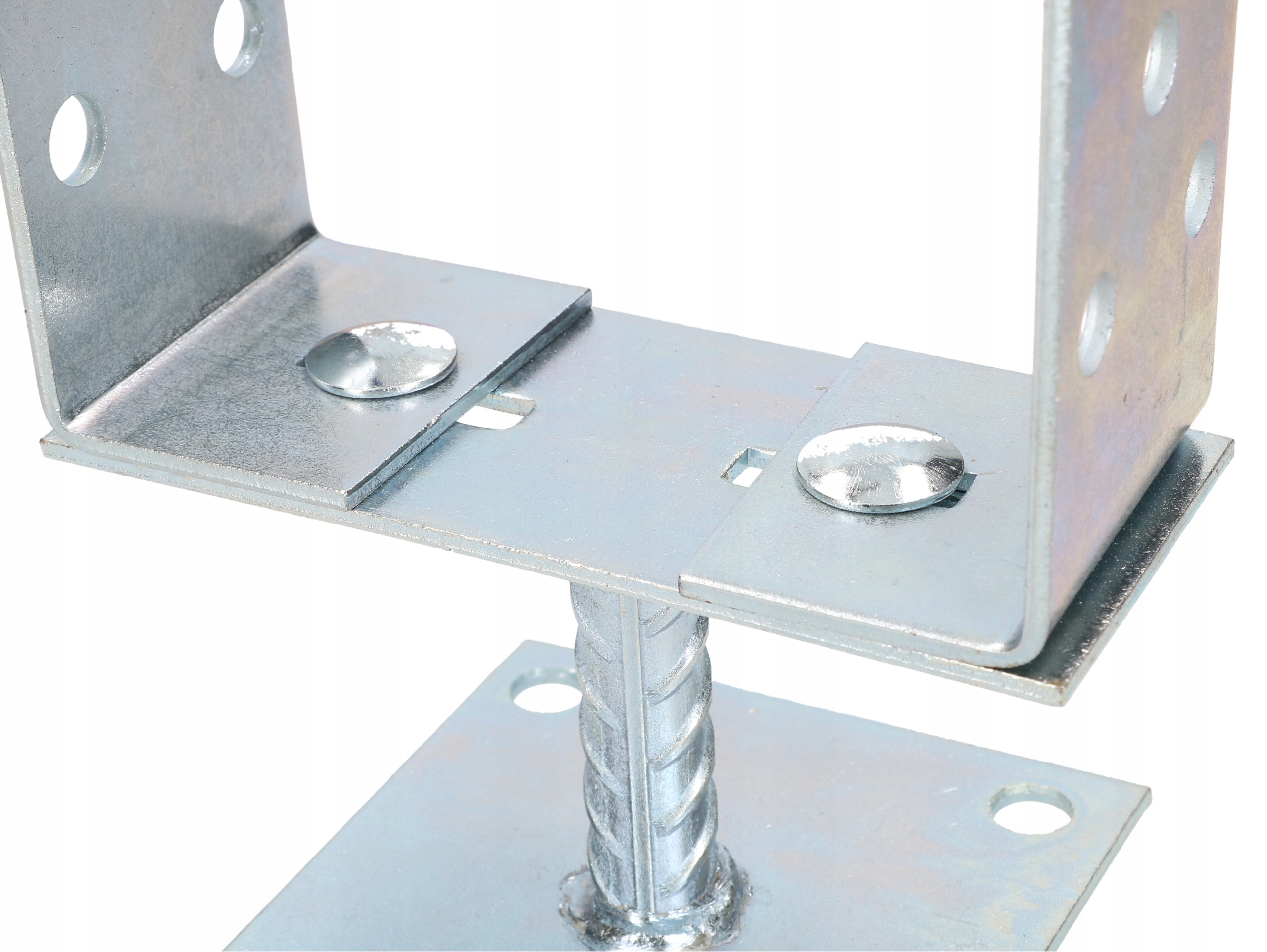 Анкер використовується для встановлення дерев’яних стовпів різних розмірів. Має можливість регулювання розтруба, що дозволяє визначати ширину монтованого елемента. Профіль кронштейна є жорстким, тому він забезпечує дотримання відстані між нижньою частиною опори та краєм бетонної поверхні.