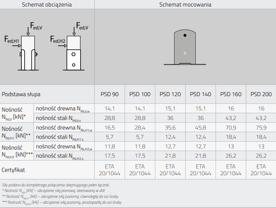 Розрізна основа, яка використовується для з’єднання дерев’яних стовпів із бетоном. Основа PSD дозволяє кріпити стовп безпосередньо до стіни. Використання двох основ дозволяє розмістити в них прямокутну жердину і підігнати їх по ширині. Ідеально підходить для балок нестандартних розмірів.