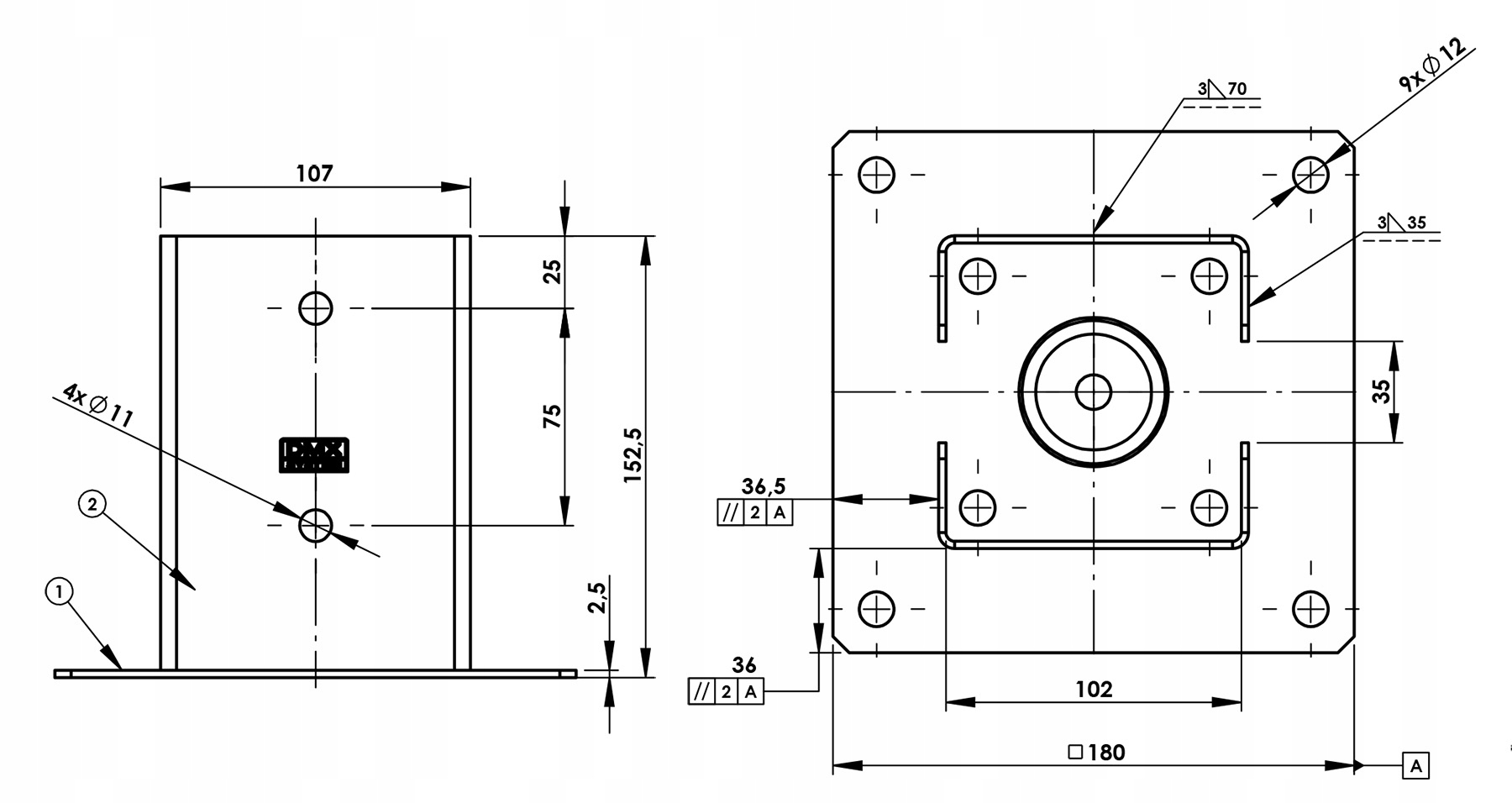 - Ширина основи - 180 мм.