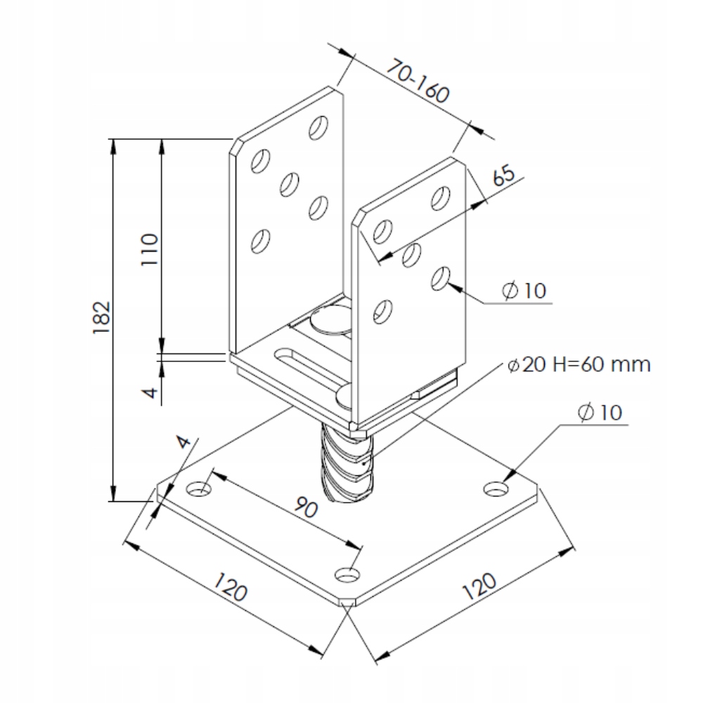 ✅ матеріал – сталевий лист S235 товщиною 4 мм, різьбовий стержень fi 20