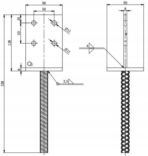ОСНОВА СТВОРДА, ВСТАВЛЕНА В БЕТОН, тип Т, 90 мм
