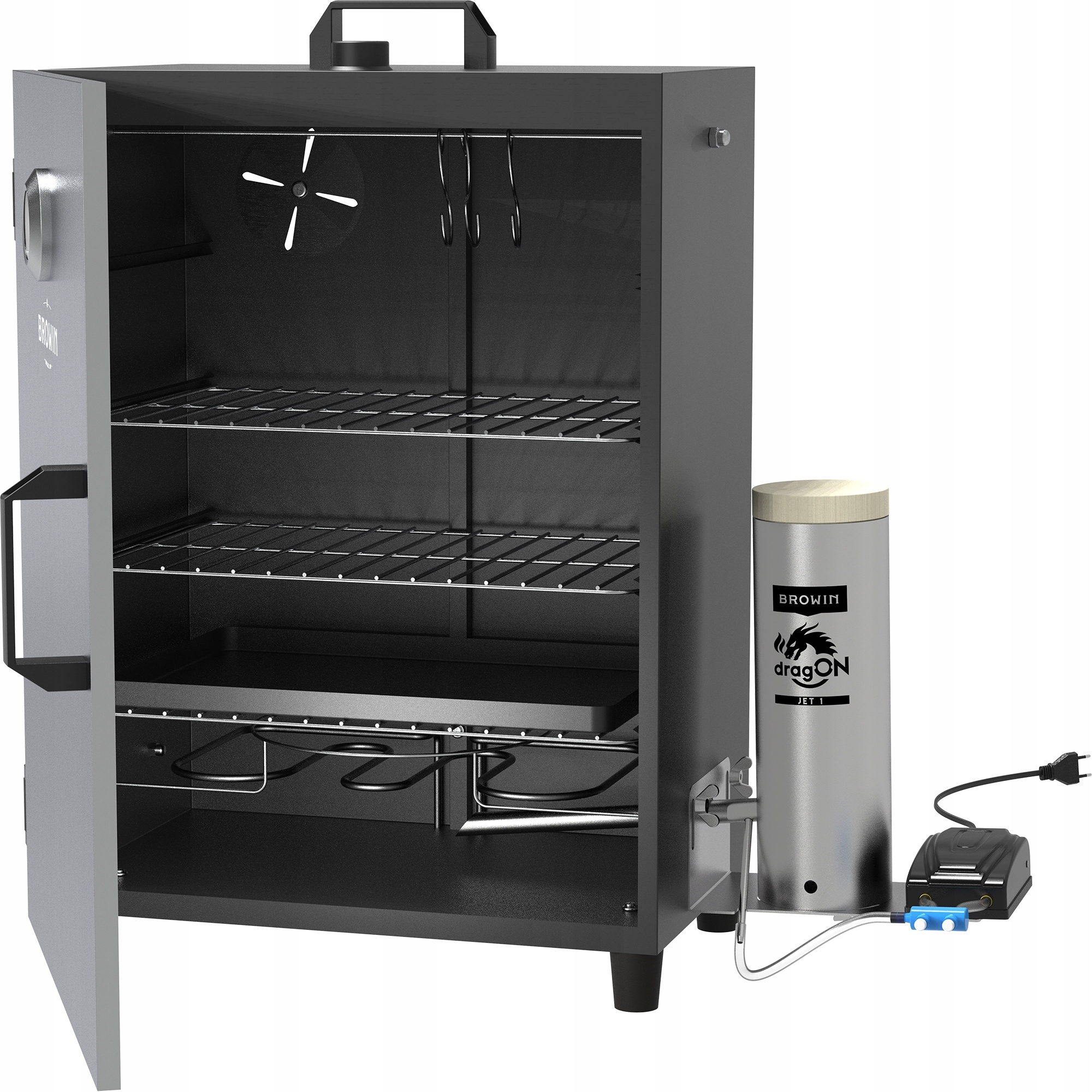 Генератор може бути встановлений з обох боків Смокі, залежно від потреб. інтегрована з кутовою форсункою. Продуктивність насоса можна регулювати ручкою, регулюючи кількість диму до потреб та обсягу копитного.