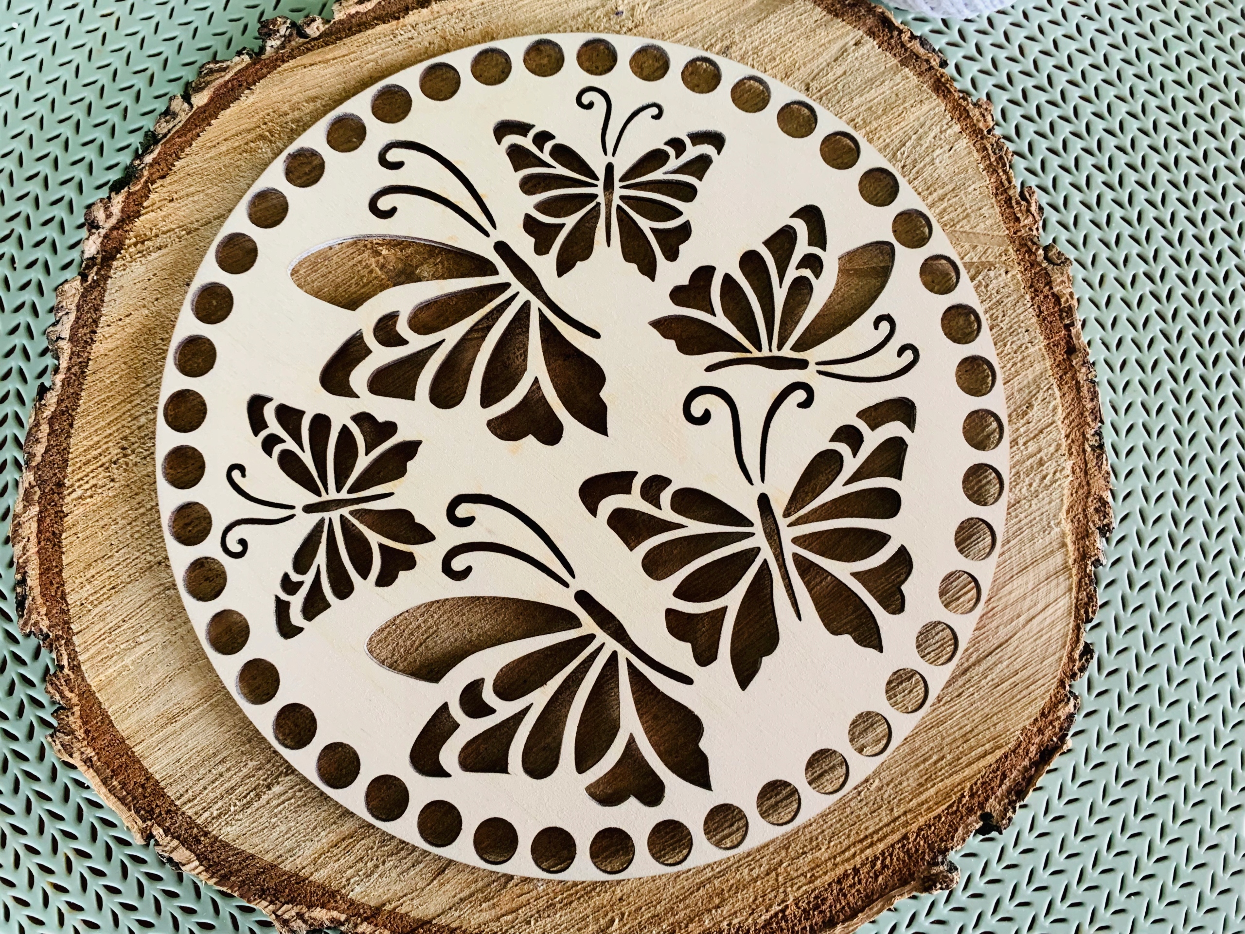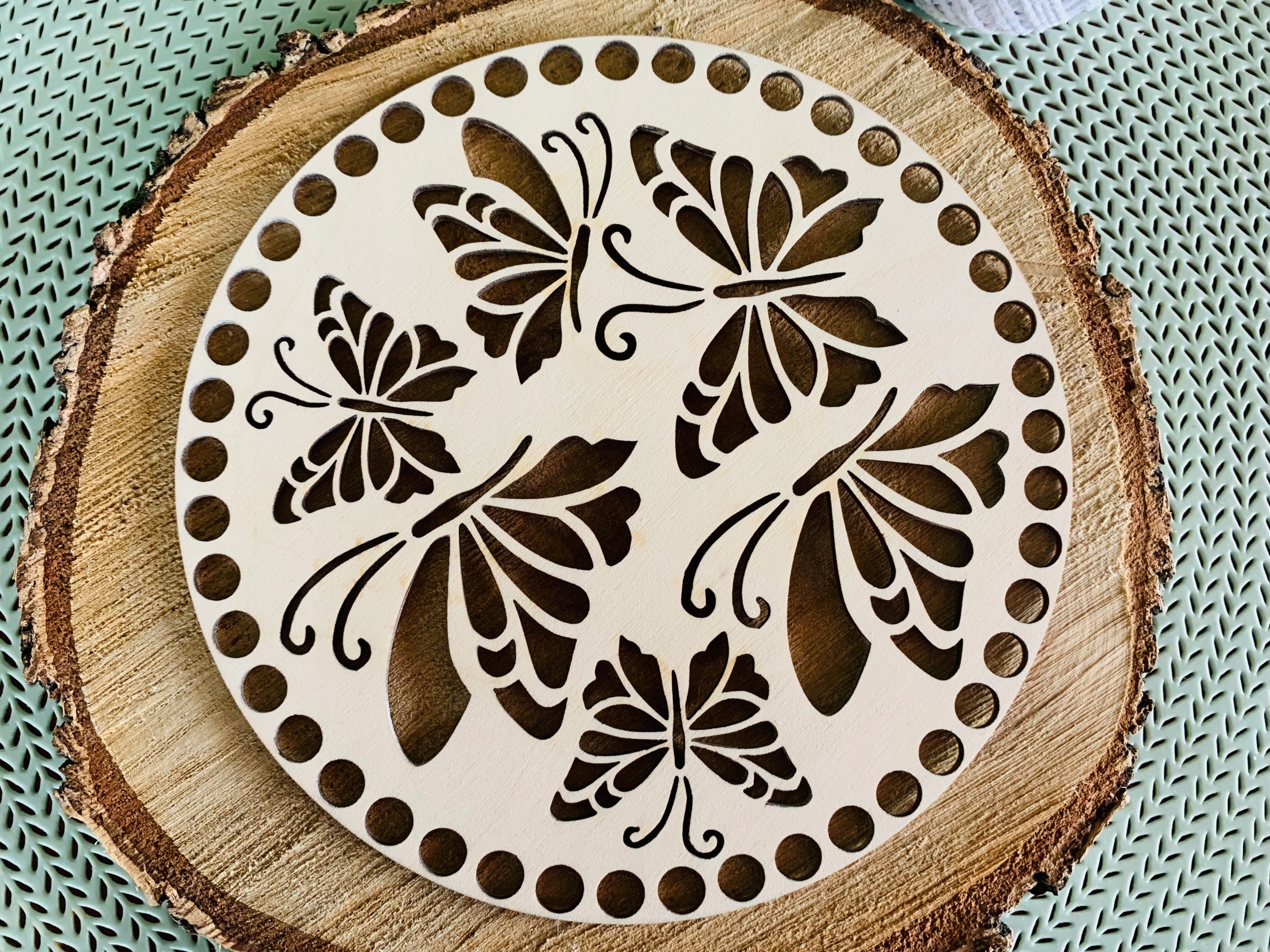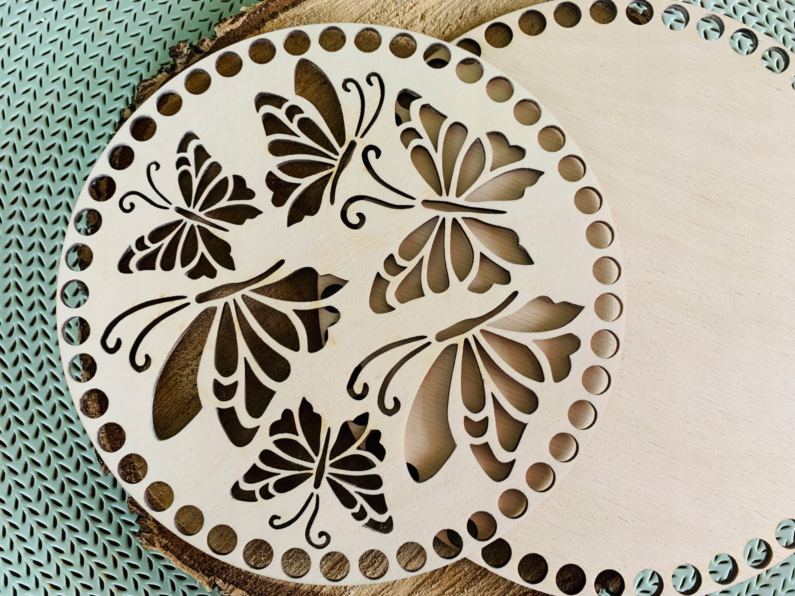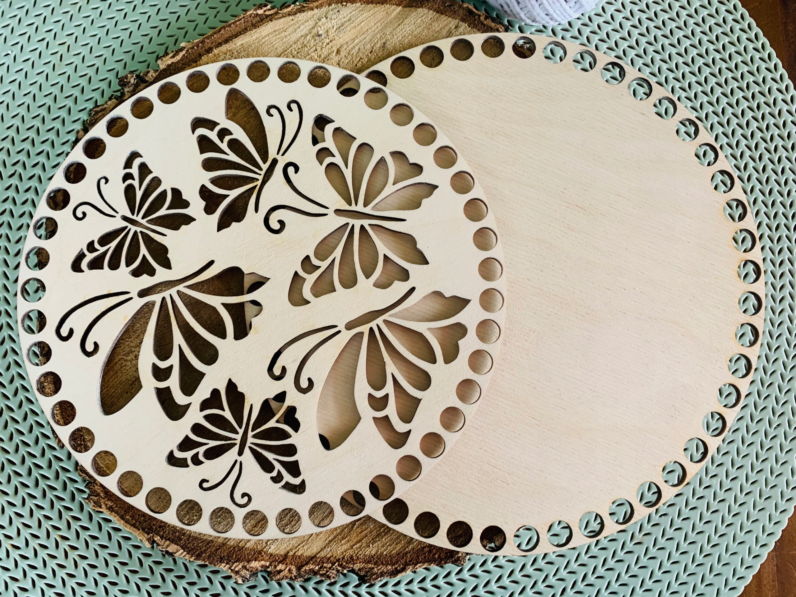 Предмет продажу - набір з двох основ для дна і кришки кошика макраме або гачком у формі кола з ажурним візерунком метелик.< /h1>