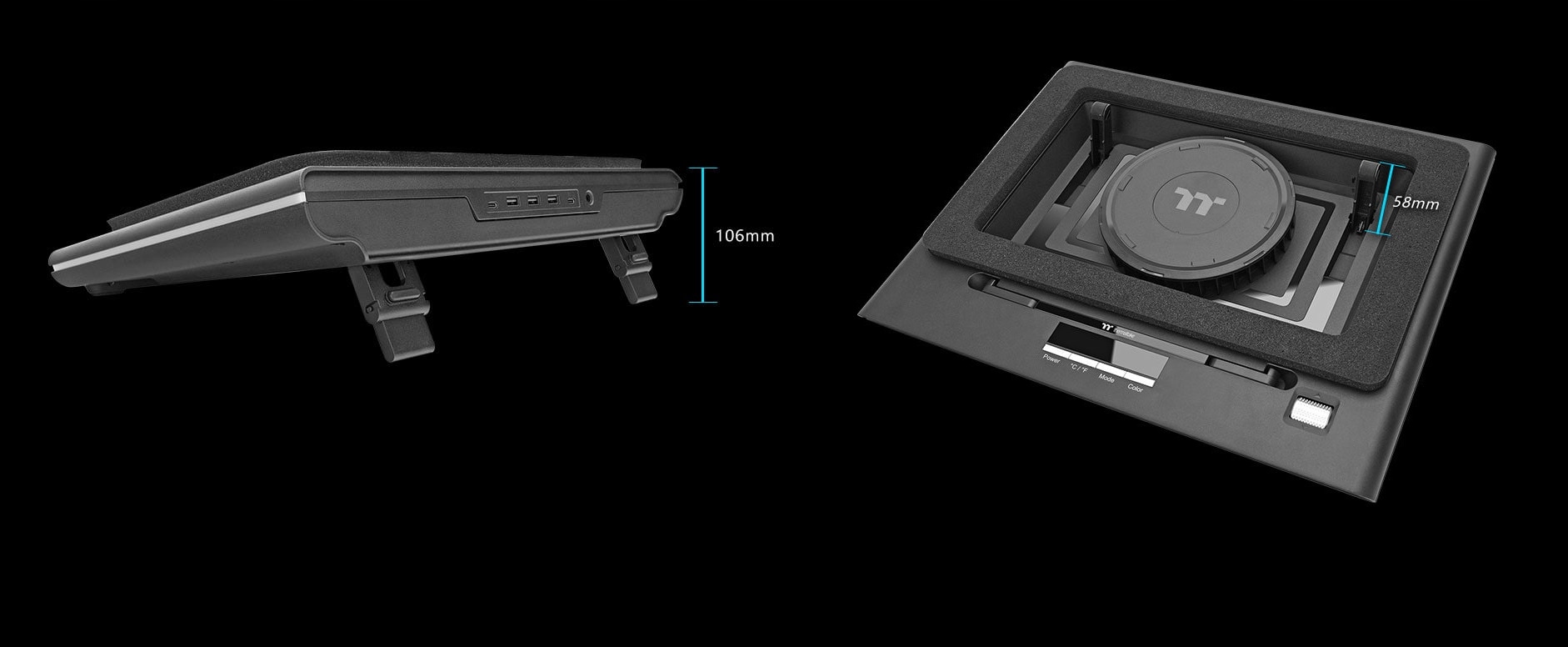 Масивний екстремальний забезпечує найвищі показники охолодження, адаптовані до високоефективних ноутбуків для ігор та робочих станцій з діагональною до 18 Inc>. Вентилятор хрестового потоку та тісна конструкція камери підвищують ефективність охолодження, а регулювання швидкості вентилятора з колесом прокрутки дозволяє точне регулювання до 3500 об / хв. /хв , забезпечення ідеального управління температурою у вимогливих завдань.