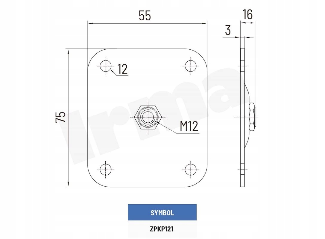 Основна шарнірна регульована M12 55x75x3 мм
