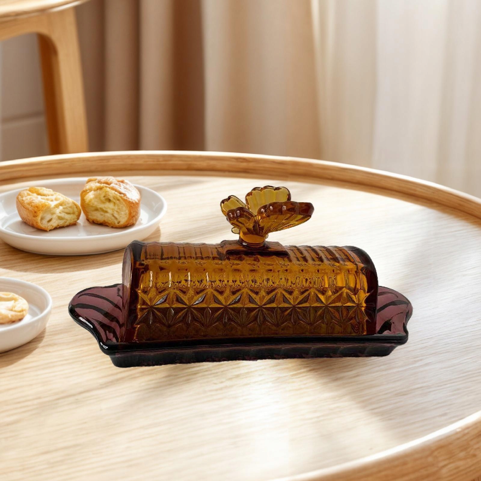 [Універсальне використання]: цей тримач для масла можна використовувати як фотореквізит, прикрасу столу або для зберігання масла. Підходить для подачі десертів і додає стильний штрих обстановці вашої їдальні, а також для використання на кухнях, прилавках, у ресторанах тощо