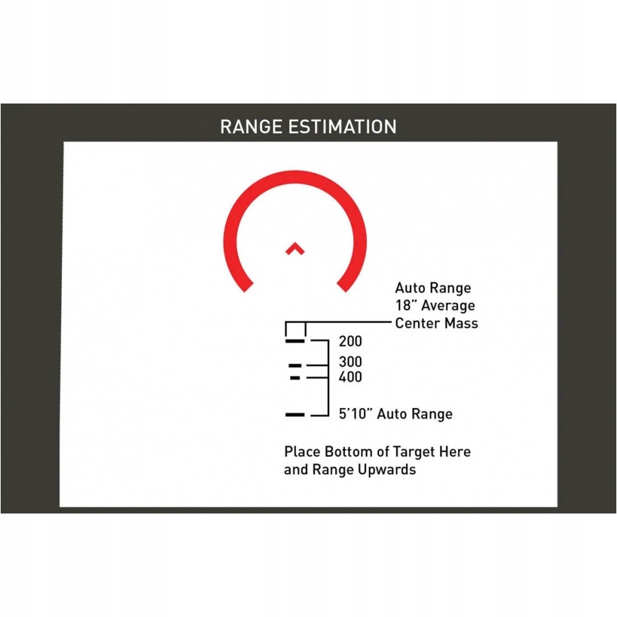 Центральний шеврон, оточений підковою, дозволяє швидко і точне захоплення цілі, а градуація нижче допомагає оцінити відстань і компенсувати падіння кулі. Завдяки цьому стрілок може швидко налаштувати приціл на різних відстанях.