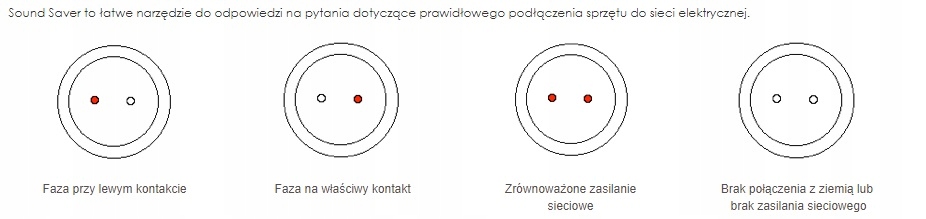 Sound Saver має розумну схему, яка вимірює контакти електромережі та і заземлення. За допомогою двох світлодіодів він показує, який контакт мережі є фазним. Світиться лише один світлодіод. Другий контакт мережі нейтральний; яка знаходиться на одному рівні з землею. Обережно, теоретично так повинно бути! На практиці через деякі впливи навантажень або обладнання нейтраль і земля можуть відрізнятися на багато вольт. Результат цієї різниці напруг може дуже серйозно вплинути на якість звуку.