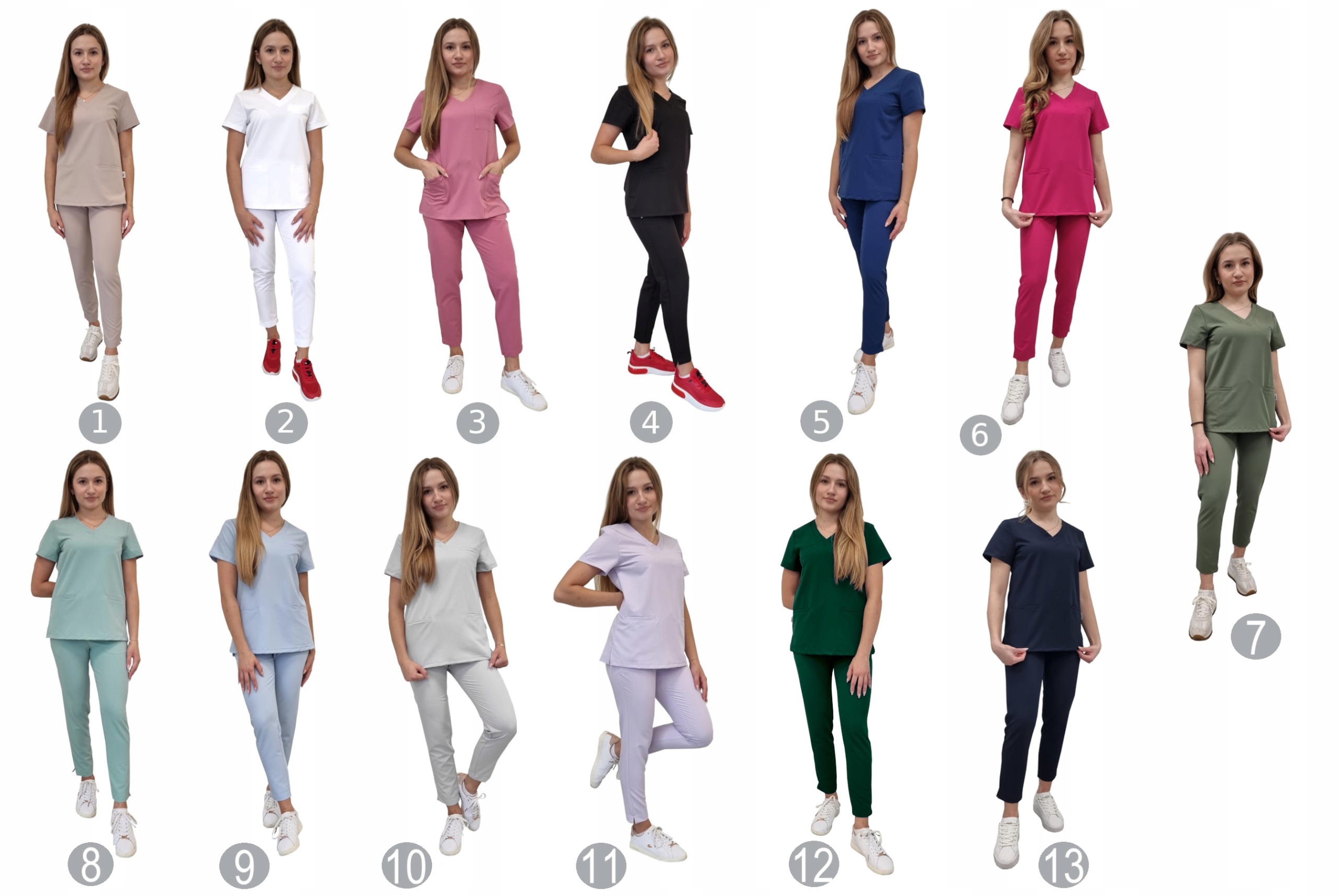 Функціональний набір медичного одягу, що складається з толстовки та штанів. Це зручна медична форма з пухким порізом, що не впливає на рухи та забезпечує комфорт протягом усього робочого дня. Цей набір доступний у багатьох пастельних кольорах, які можуть бути частиною багатьох стилів як для літа, так і для зими.
