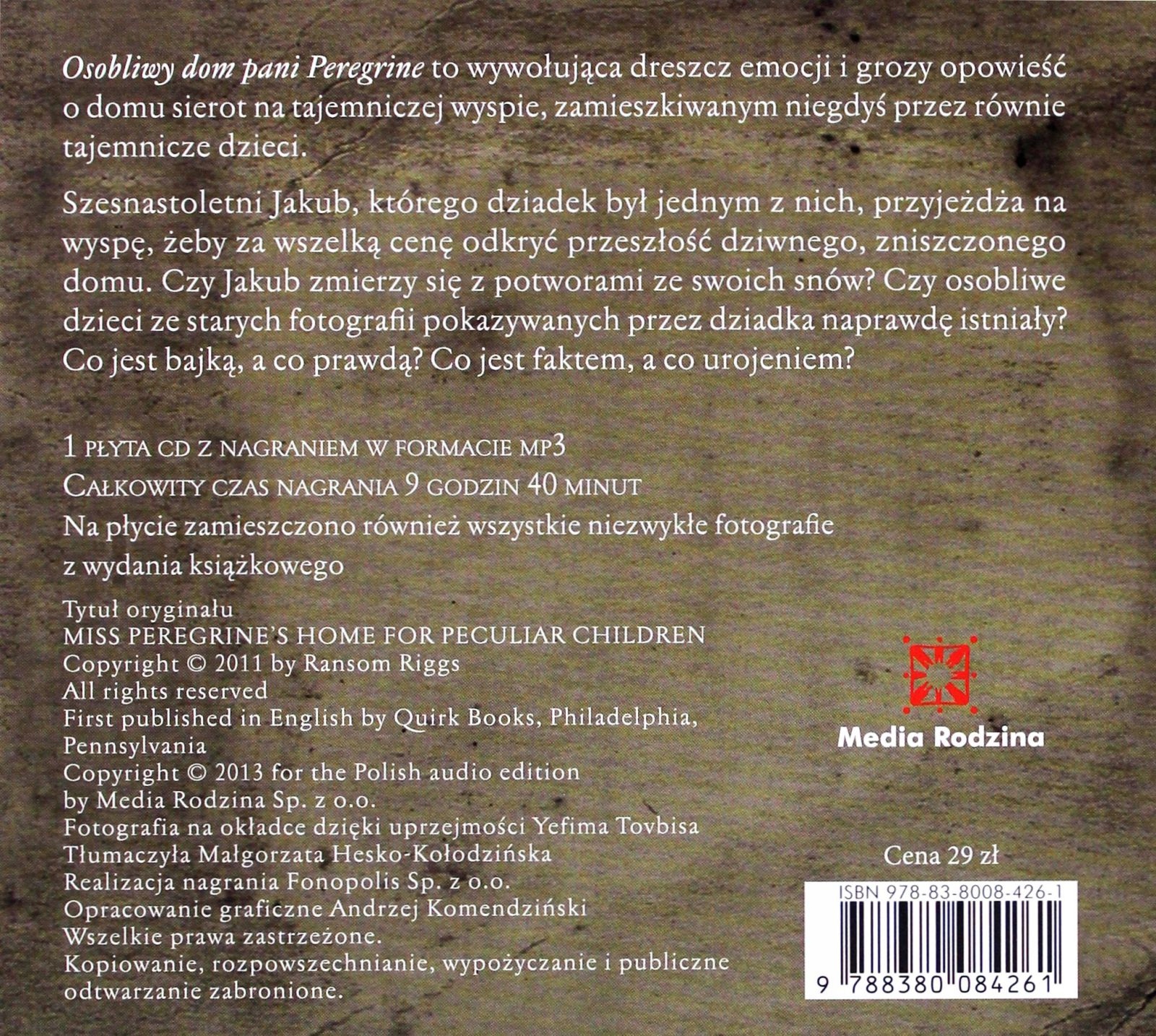 Просматривая «OSOBLIWY DOM PANI PEREGRINE - RANSOM RIGGS [AUDIOBOOK]», вы можете быть уверены, что данный товар из каталога «Книги для подростков» будет доставлен из Польши и проверен на целостность. В цене товара, указанной на сайте, учтена доставка из Польши. Внимание!!! Товары для Евросоюза, согласно законодательству стран Евросоюза, могут отличаться упаковкой или наполнением.