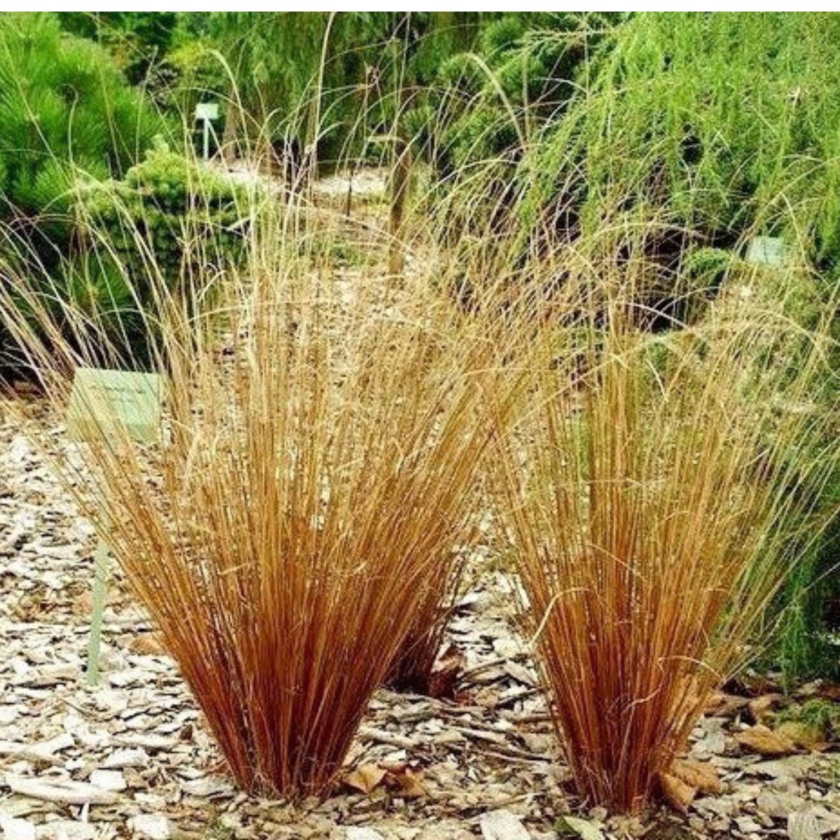 Багаторічна і красива трава, виростає до 40-60 см у висоту, утворює великі (ø 0,8 - 1 м), пухкі куртини; довге вузьке листя, червонувато-буро-зелене під час вегетації, інтенсивно-червоне восени; квіти зібрані в коричневі колоски.
