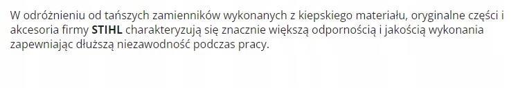 Просматривая «OSŁONA PROWADNICY STIHL 30 - 35 CM WĄSKA ORYGINAŁ», вы можете быть уверены, что данный товар из каталога «[rubrica_name]» будет доставлен из Польши и проверен на целостность. В цене товара, указанной на сайте, учтена доставка из Польши. Внимание!!! Товары для Евросоюза, согласно законодательству стран Евросоюза, могут отличаться упаковкой или наполнением.