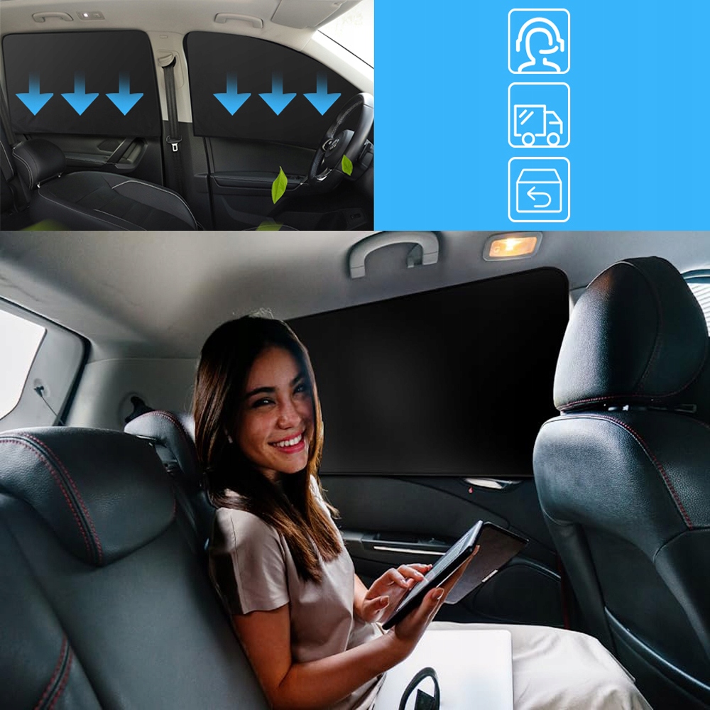 OSŁONY PRZECIWSŁONECZNE NA PRZEDNIĄ/TYLNĄ SZYBĘ MAGNESAMI 4SZTUK