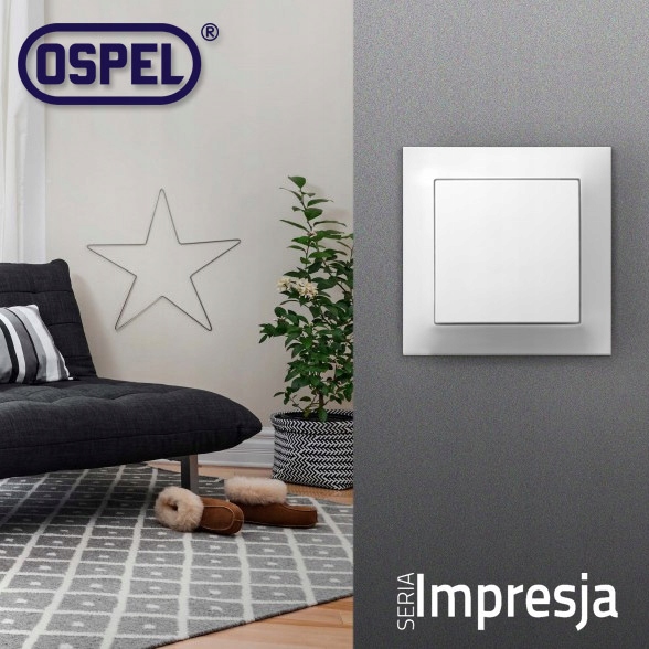 OSPEL Impresja - це високоякісне електромонтажне обладнання. Широкий асортимент вимикачів і всіх видів розеток здатний задовольнити найвишуканіші смаки. Незалежно від типу освітлення, використання обладнання OSPEL полегшує монтаж, підвищує безпеку та надає абсолютно нові можливості використання. Обладнання OSPEL адаптоване до рамної системи (1, 2, 3, 4 та 5-кратні рами). Серія Impresja розроблена для вбудованого монтажу в стандартну коробку Ø60.