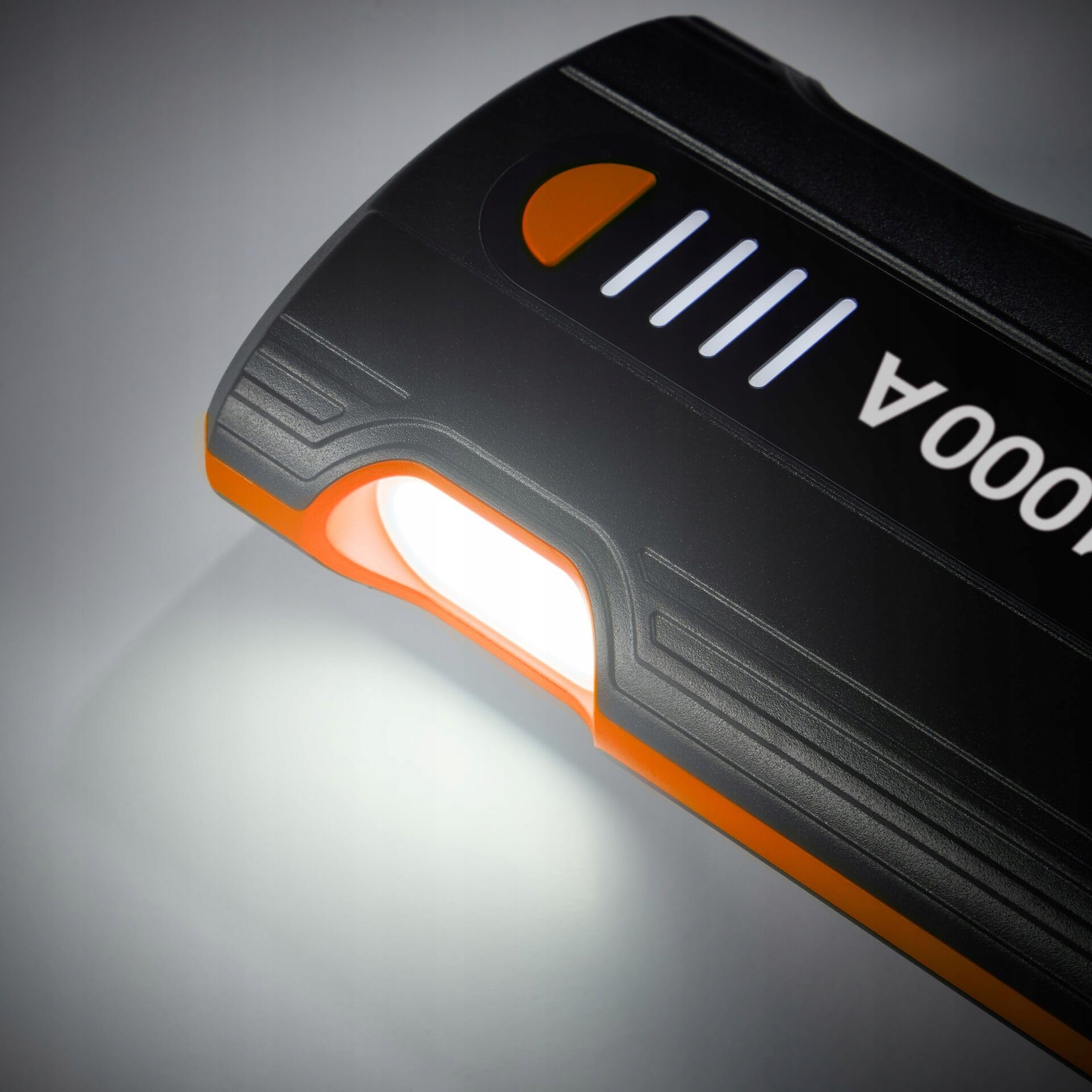 - bullet point: стартер акумулятори для автомобілів 12В з бензиновими двигунами об’ємом до 6,0 л і дизельними до 3,0 л. Піковий струм 1500 А та пусковий струм 350 А, живлення від батареї ємністю 12000 мАг, вбудована функція «Boost» — стрибок від 0 В: можна запускати навіть повністю розряджені батареї, численні функції безпеки для захисту користувача від нещасних випадків або неправильного використання: унікальна розумна конструкція пряжки з вбудованою технологією безпеки. Вбудовані аудіо- та візуальні індикатори, щоб запобігти пошкодженню батареї та потенційним травмам користувача. Оснащений входом і виходом PD60W Type-C і виходом USB QC3.0 2.4A: дозволяє швидко заряджати сучасні телефони, планшети та навіть ноутбуки за допомогою USB-C зі швидкістю до 60 Вт. Має вбудований світлодіодний ліхтар, який дозволяє використовувати в темних умовах з яскравим білим світлом, включаючи червоне блимання та функції SOS. Включає кришку та USB-кабель
