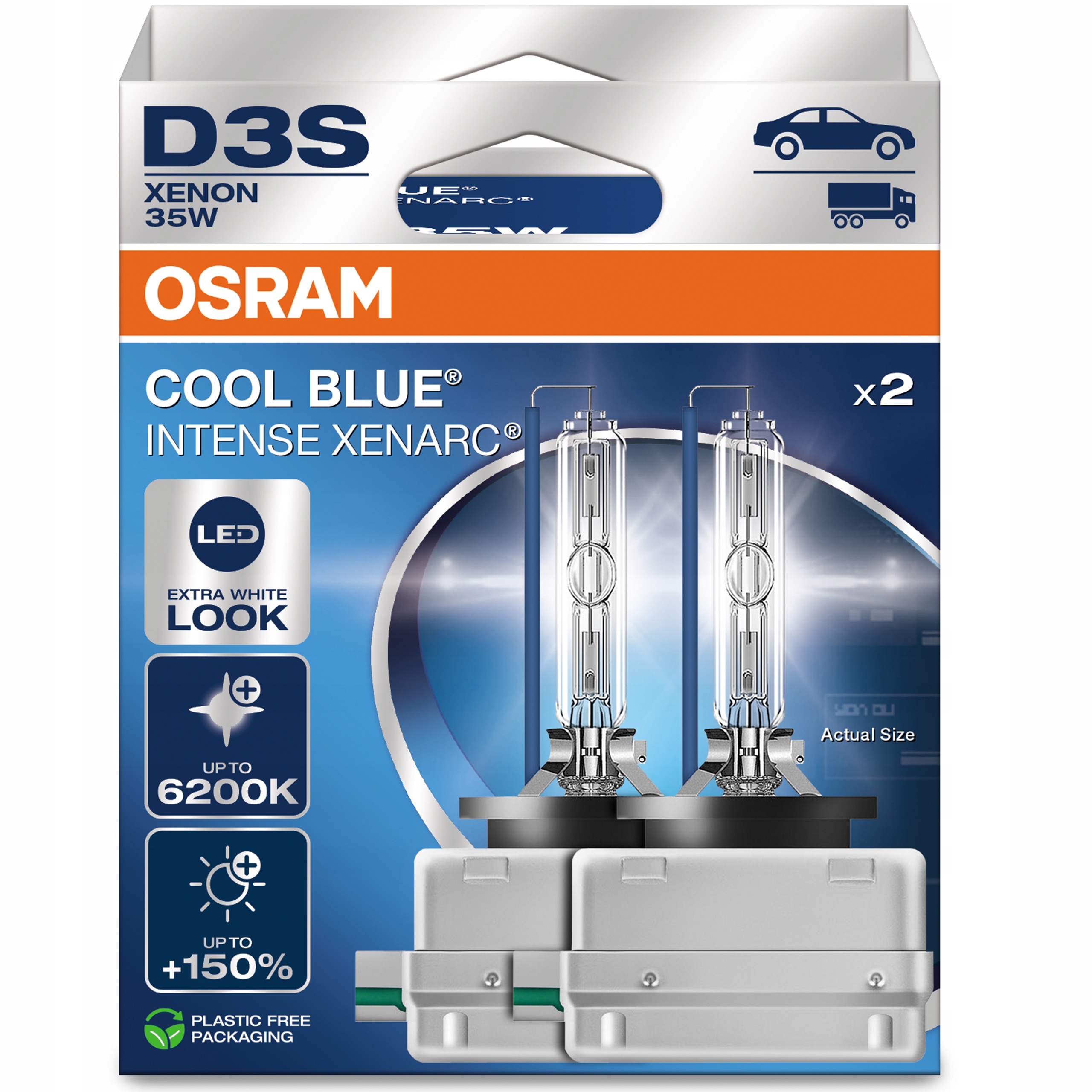 XENARC COOL BLUE INTENSE – відкрийте для себе сучасний погляд на високу потужність! Завдяки білому світлодіодному освітленню та висококонтрастному ксеноновому світлу ця автомобільна лампа особливо сподобається водіям, яким подобається ідеальне поєднання стильного та індивідуального дизайну з унікальним освітленням дороги. Технологічно вдосконалене ксенонове світло з колірною температурою до 6200 Кельвінів пропонує високоефективну технологію, чудовий ефект і безкомпромісний дизайн. Завдяки спеціальній системі наповнення, яка використовується замість звичайного покриття, лампа випромінює додаткове біле світло. Це стильне освітлення створює ефект фокусування, який допомагає іншим водіям вас краще бачити. Відкрийте для себе надзвичайно яскраве, контрастне та сліпуче біле світло з температурою до 6200 Кельвінів і на 150% більше світла! З XENARC COOL BLUE INTENSE ніч перетворюється на день.