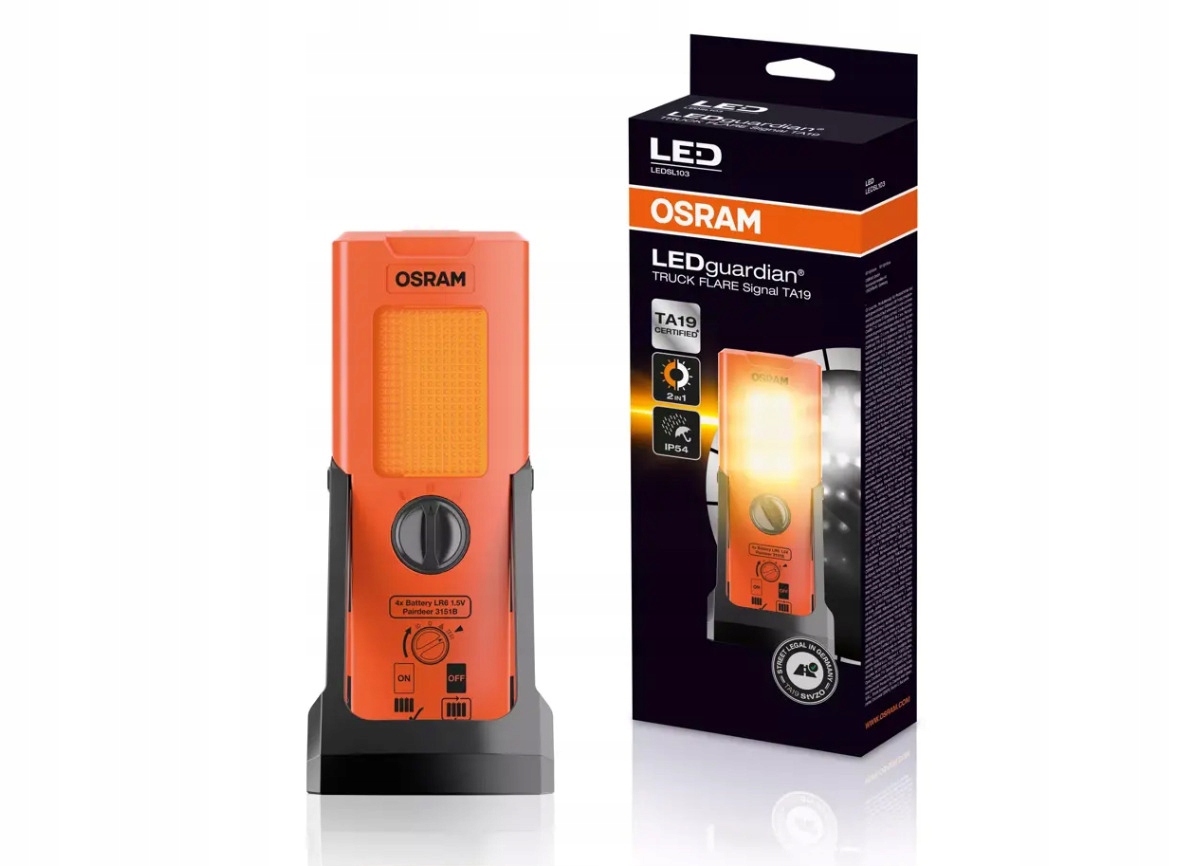 Компактна конструкція дозволяє зберігати попереджувальну лампу під рукою в транспортному засобі, і якщо це необхідно, її можна швидко і легко встановити безпосередньо поруч із попереджувальним трикутником завдяки складанню, довговічній та анти -слизі. Ще одна перевага полягає в тому, що акумулятори, що містяться в упаковці, означають, що Osram Ledguardian Truck Signal Ta19 негайно готовий до роботи.